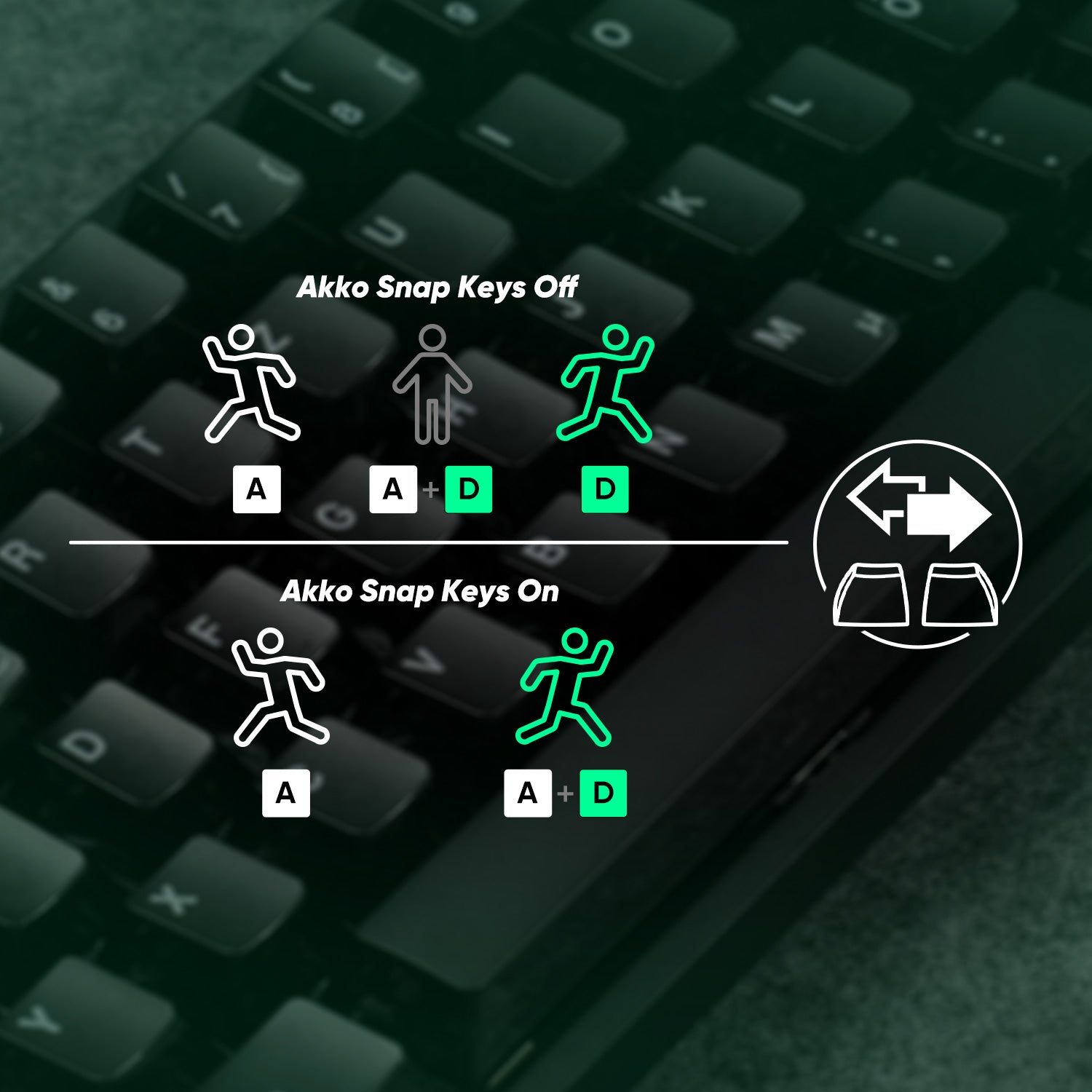Snap Key, Monsgeek’s SOCD implementation, prioritizes the latest input for faster directional shifts, ensuring smooth, responsive control in FPS games.