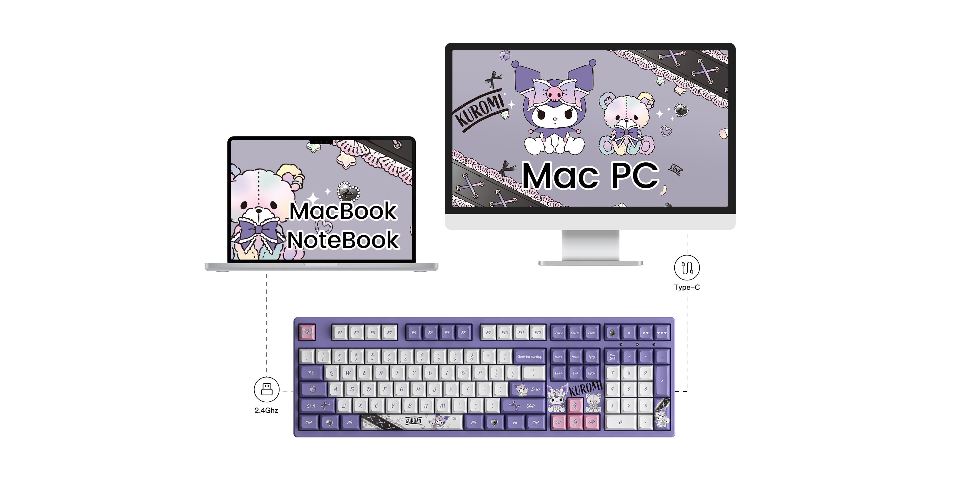 The keyboard supports wireless 2.4G and wired Type-C connections, allowing effective connectivity with multiple devices to meet various work scenarios and usage requirements.