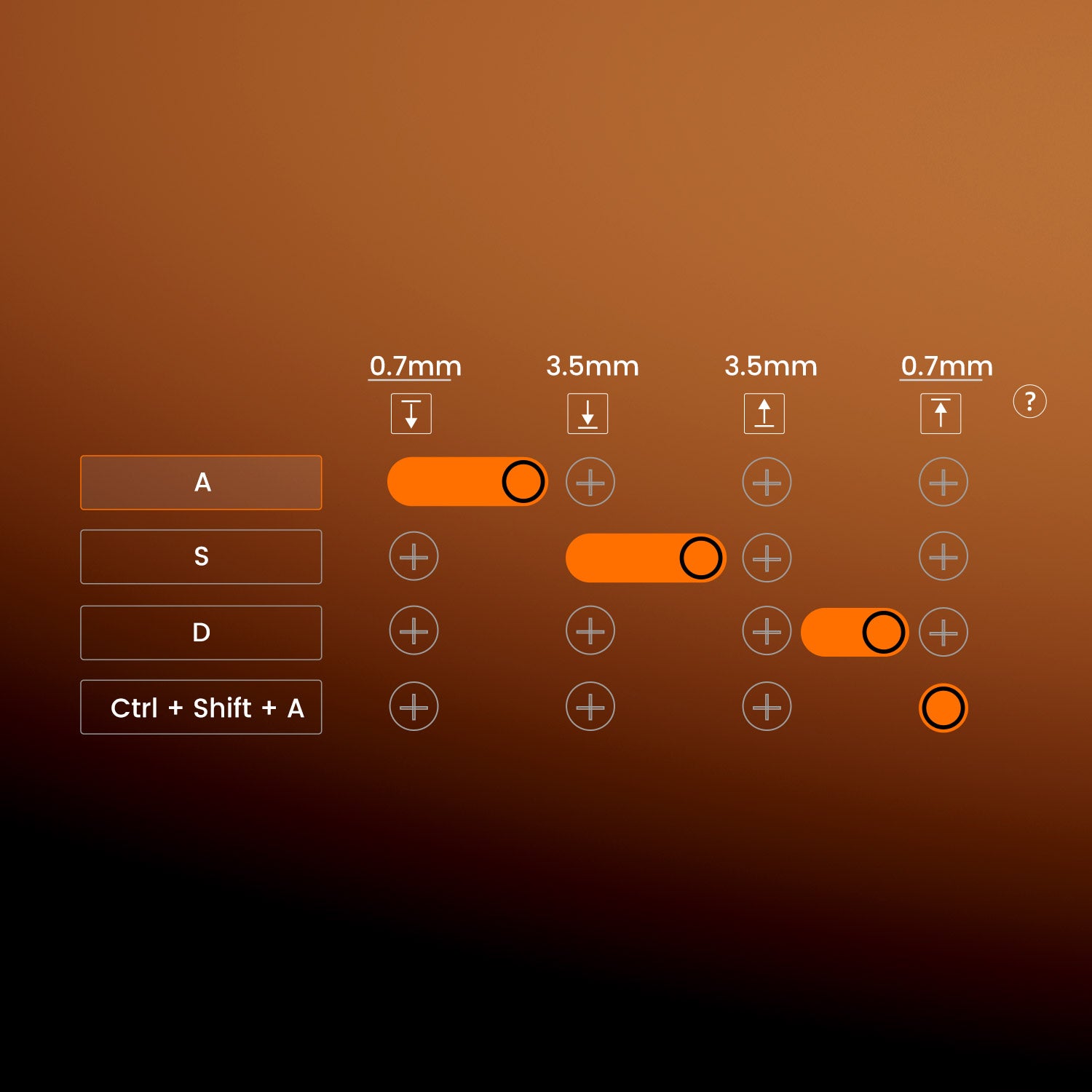 Depending on your keypress force: a light press triggers action 1, a deeper press activates action 2, and releasing the key also supports a two-stage key setting.