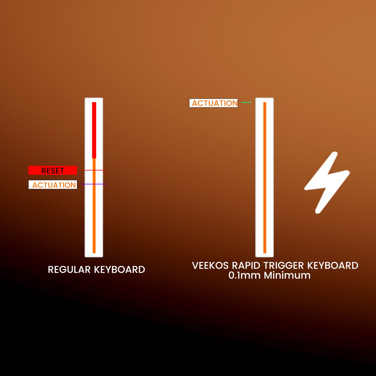Achieve ultra-accurate 0.005mm Rapid Trigger and adjustable actuation distance in 0.005mm step. This allows users to fine-tune their typing or gaming experience, ensuring optimal actuation for faster response times with enhanced precision, ideal for competitive gaming.