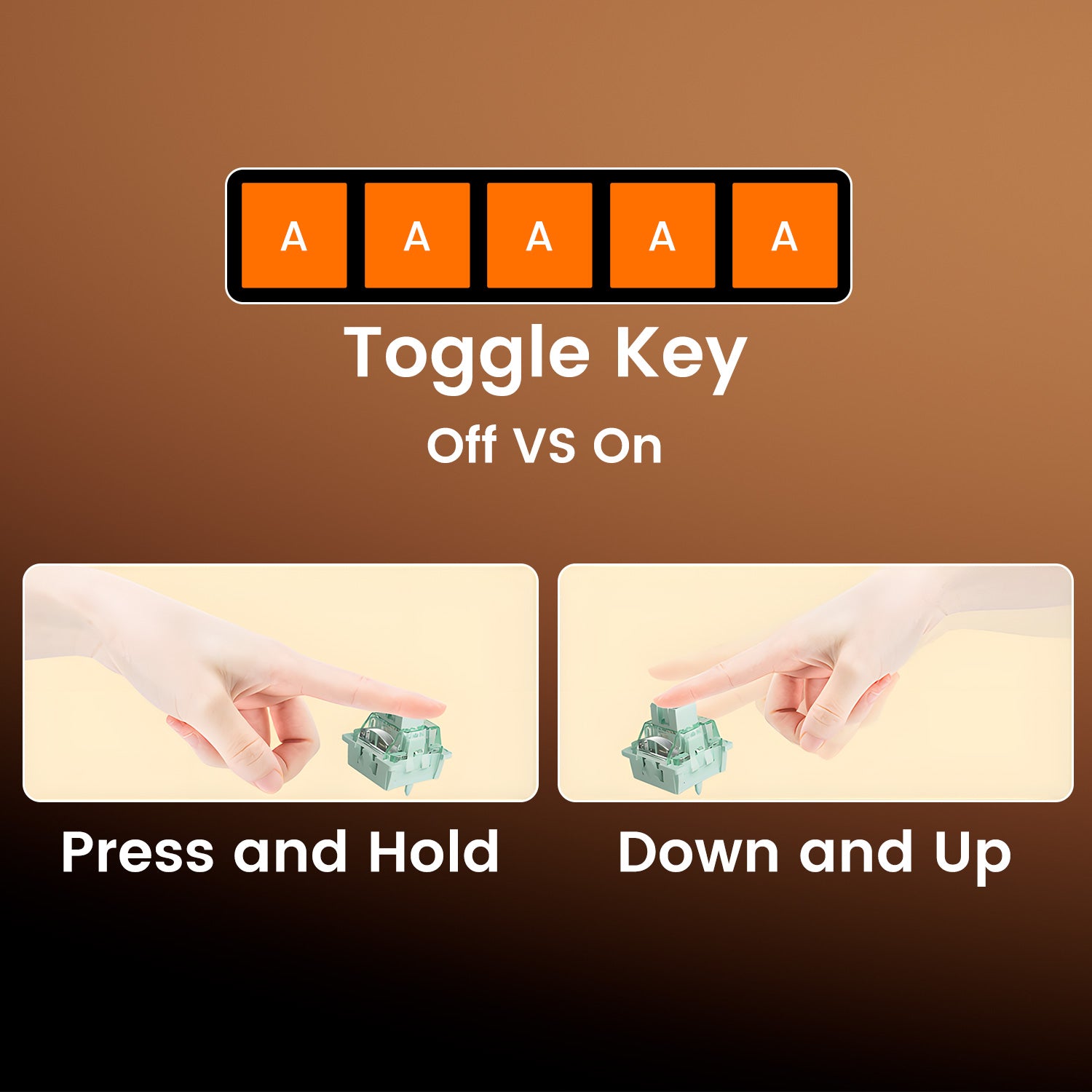 TGL, or Toggle Key, transforms a key into a toggle switch. When you press this switch, you can activate one of two scenarios: either continuously hold down the key/function, or trigger the key/function multiple times at a high frequency.