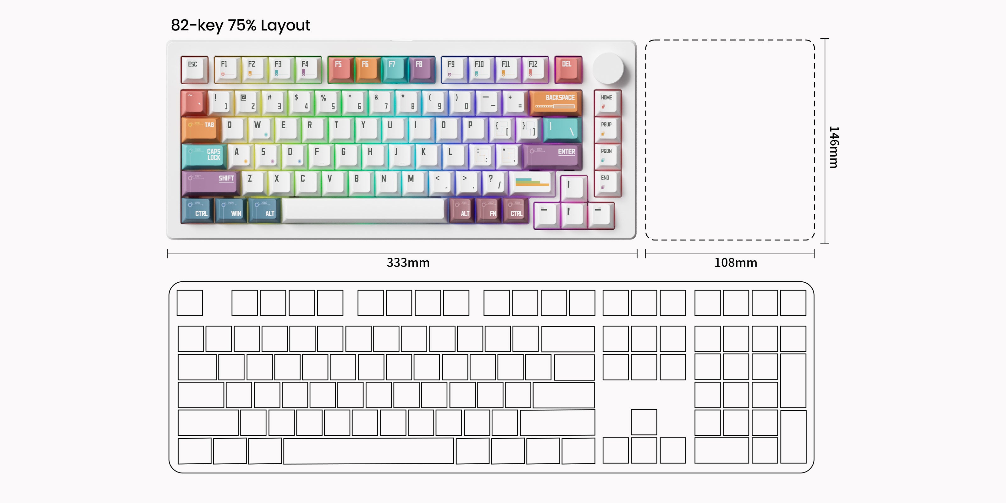 75 % schnell zerlegbare mechanische Tastatur aus Aluminium mit Knopf