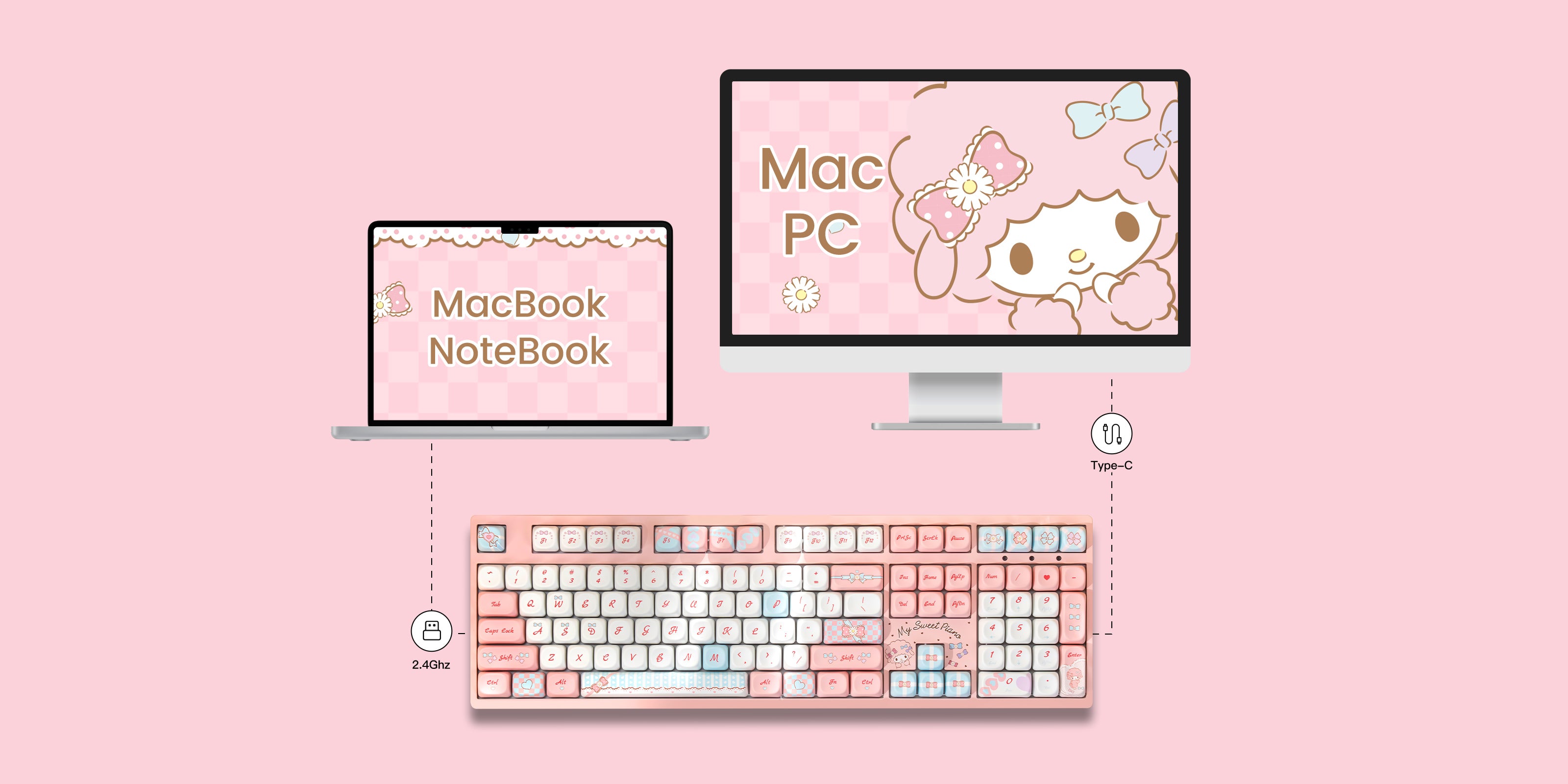 Soft, sweet, and irresistibly gentle — the My Sweet Piano 3108RF brings Sanrio’s fluffy character to life in a delicate blend of pink and blue. Designed for those who adore pastel aesthetics and smooth typing, this full-size keyboard combines adorable artistry with Akko’s signature build quality.