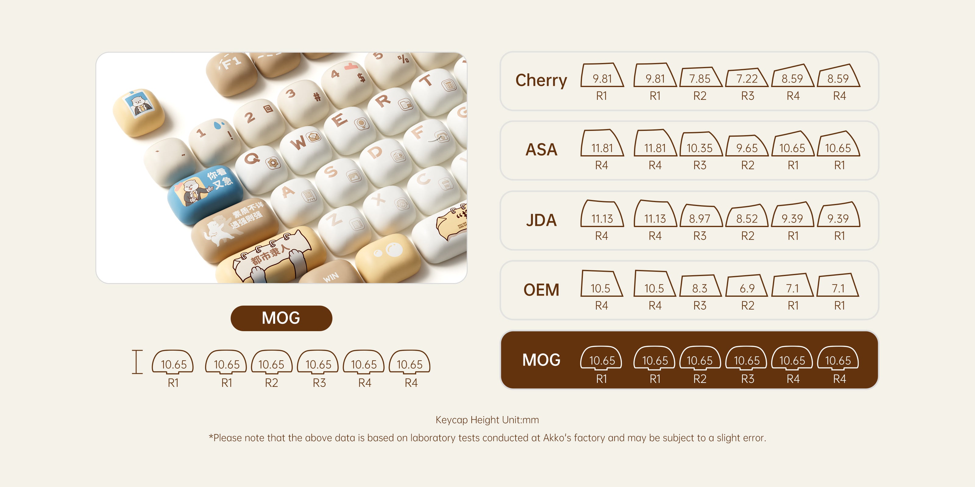 Das MOG-Profil weist eine ausgeprägte pilzförmige Struktur mit raffinierten und glatten Kanten auf, die ein verbessertes Gefühl der Krümmung vermitteln. Verleihen Sie mit unseren niedlichen Tastenkappen-Sets einen Hauch von Verspieltheit.