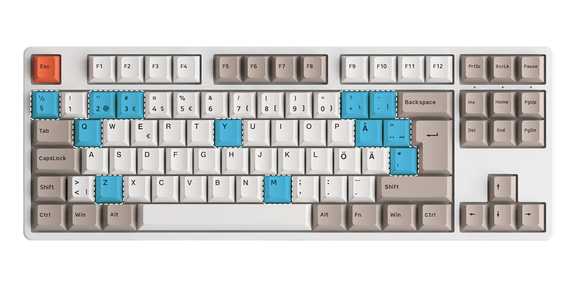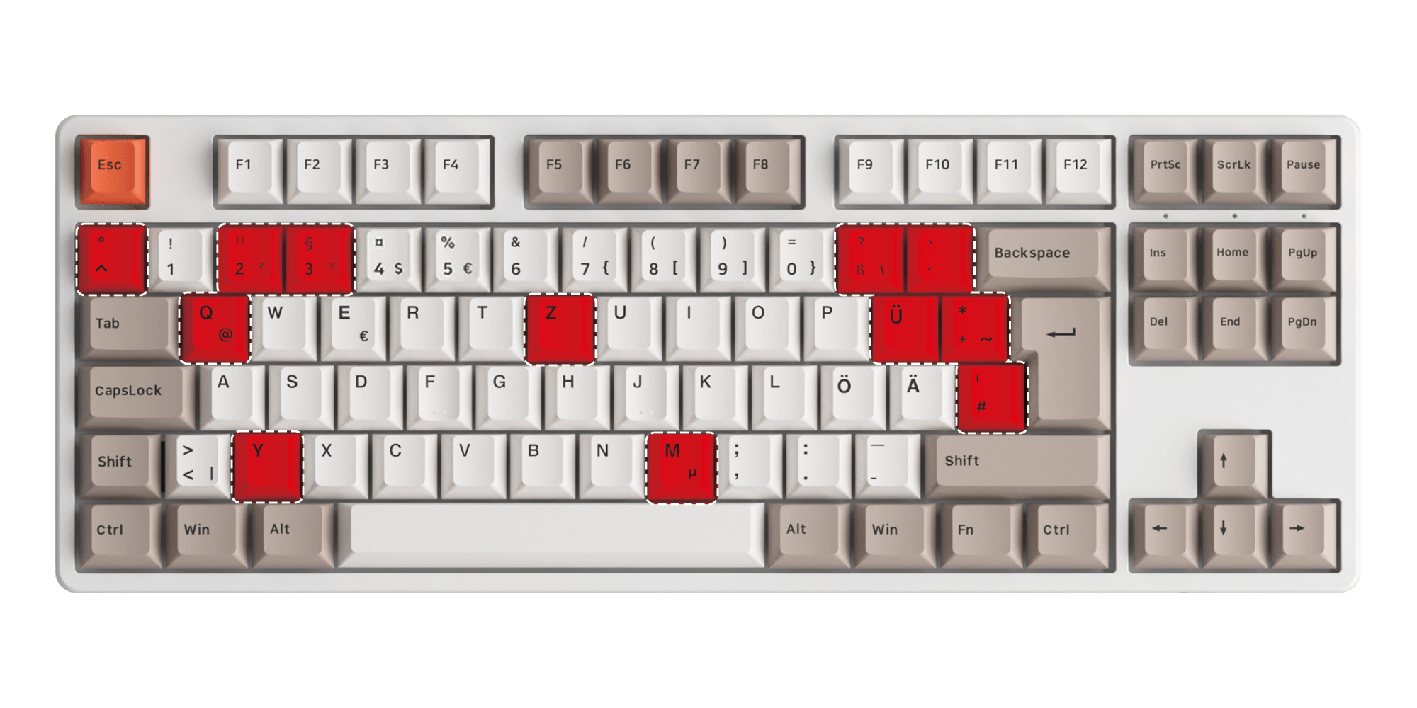 Hergestellt aus PBT und die Beschriftungen werden im Double-Shot-Verfahren hergestellt, einer der haltbarsten Beschriftungsmethoden, um Abnutzung oder Verfärbung bei der Verwendung zu verhindern.