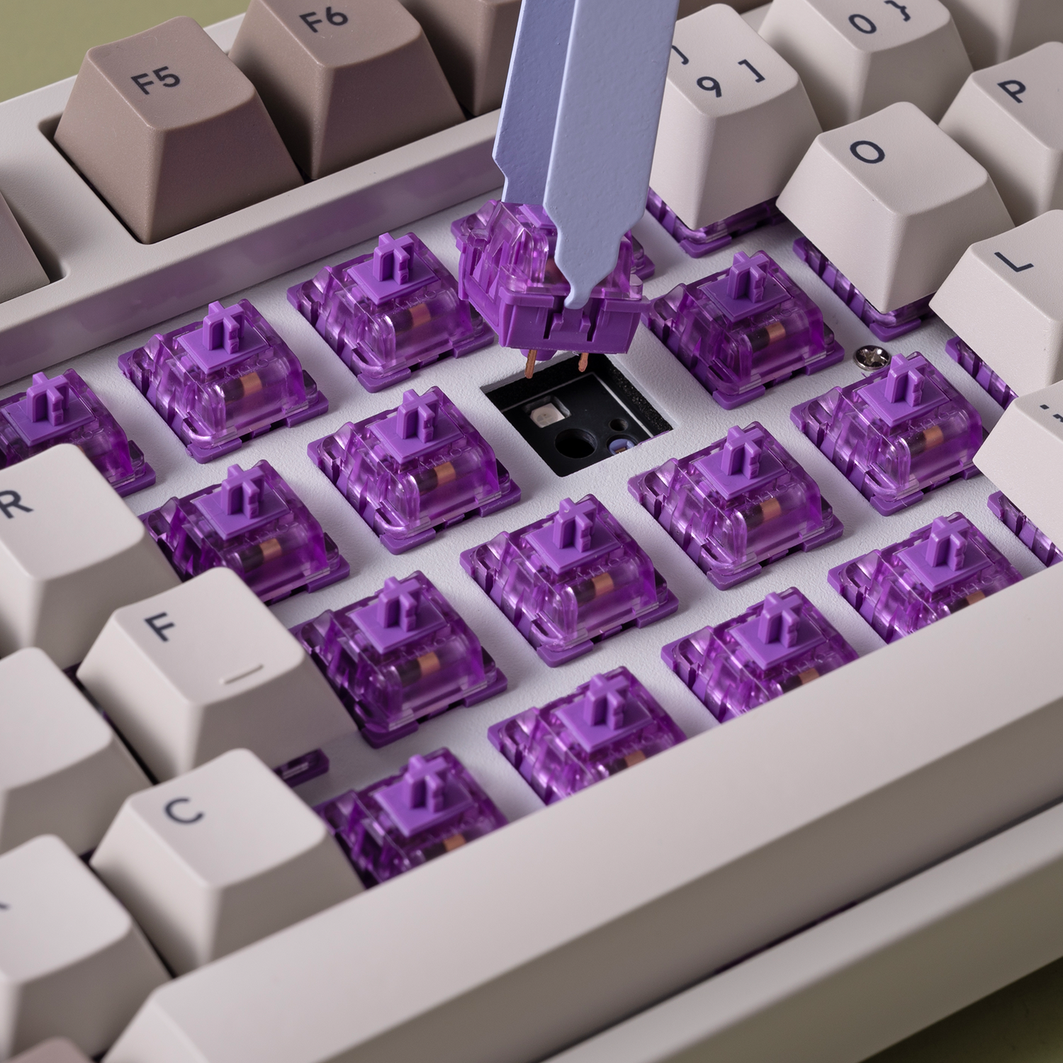 1. Entfernen Sie die hervorgehobenen Tastenkappen gemäß der Abbildung oben mit dem mitgelieferten Tastenkappen-Abzieher von Ihrer Tastatur.
