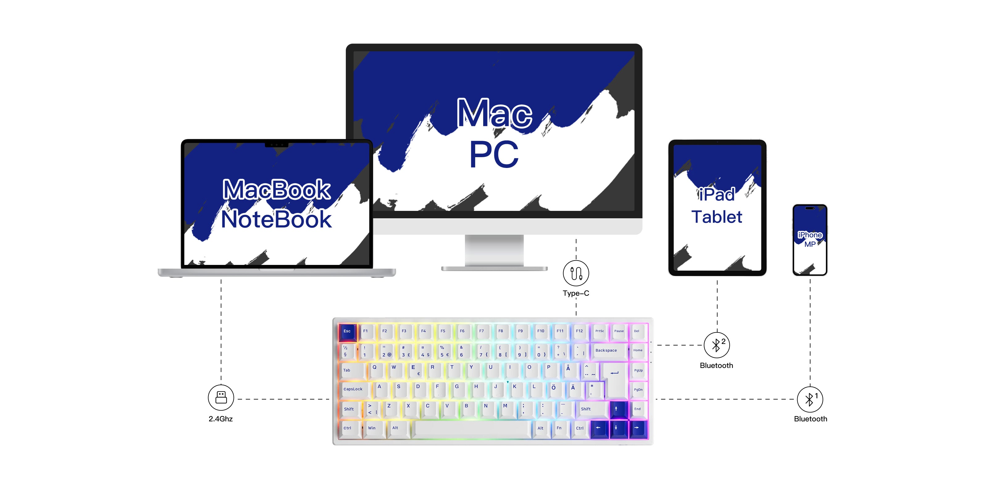 Rétroéclairage LED RVB + remplaçable à chaud + Bluetooth 5.0 + sans fil 2,4 G + filaire (mode USB-C) tout en un !