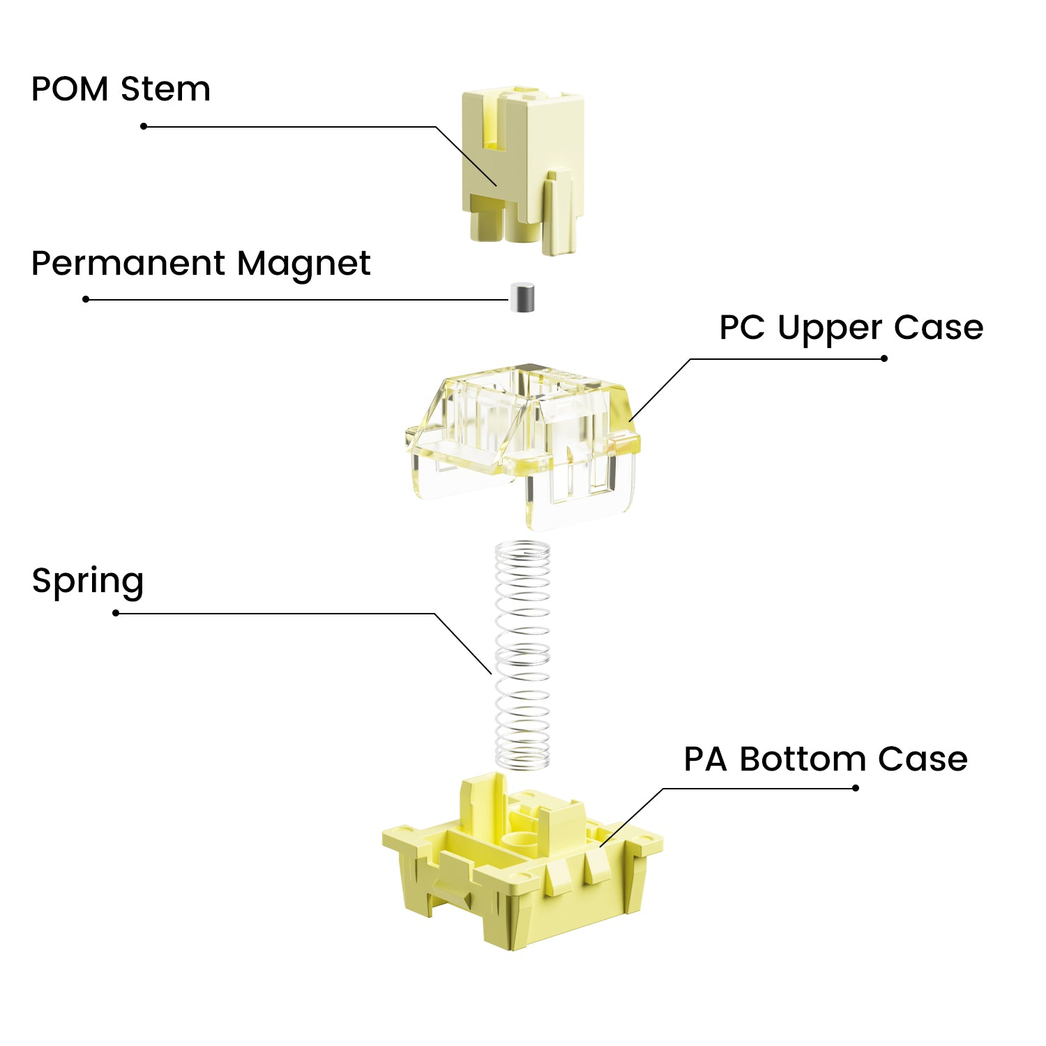 Compatible avec les interrupteurs magnétiques Akko Cream Yellow et les interrupteurs mécaniques à 3 broches