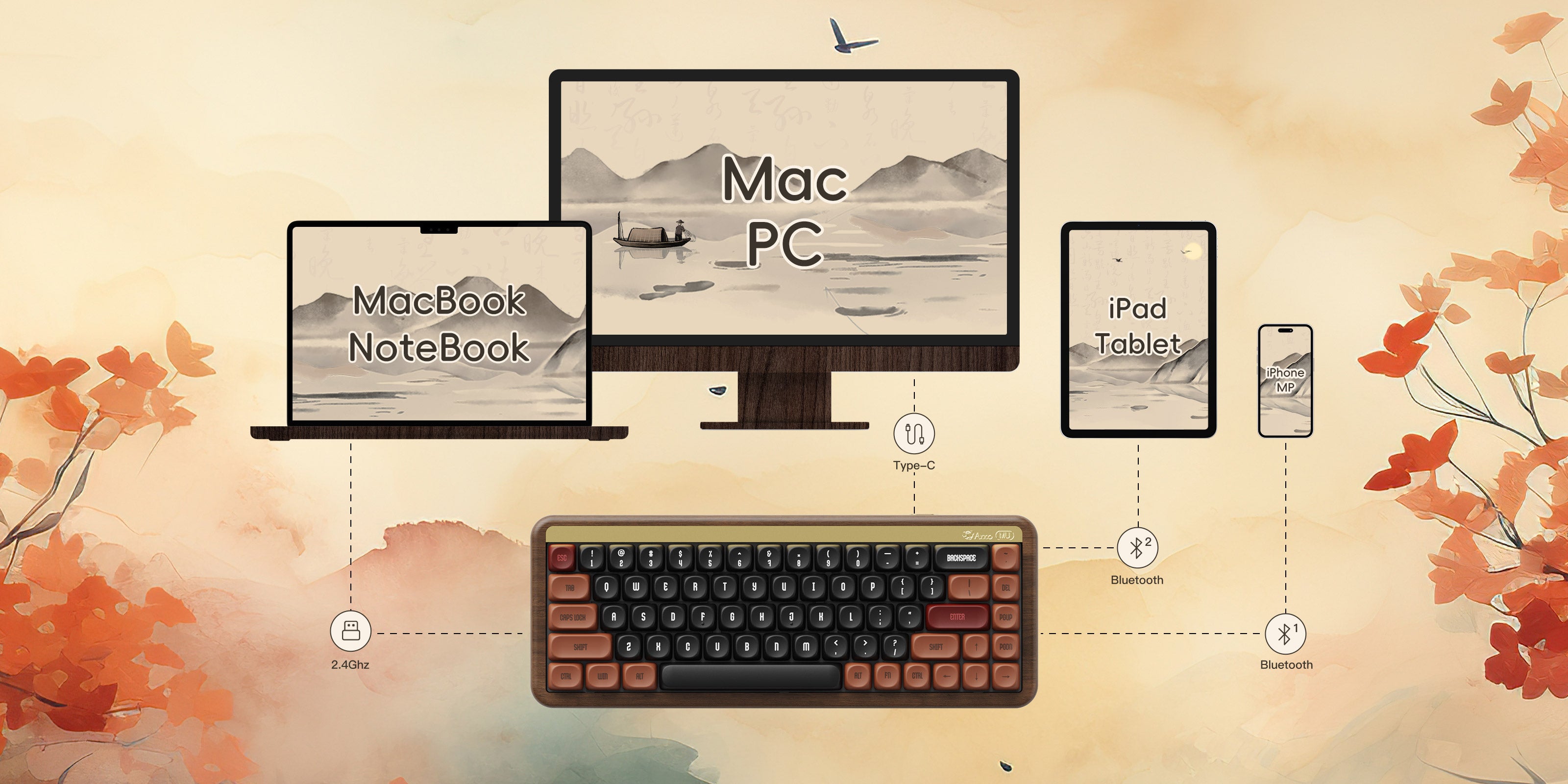 Inspiré des paysages saisonniers, ce clavier présente un grain de bois profond qui s'harmonise avec les teintes subtiles, offrant une expérience visuelle chaleureuse. Idéal pour la maison ou le bureau, il apporte tranquillité et confort automnaux à votre travail et à votre vie.