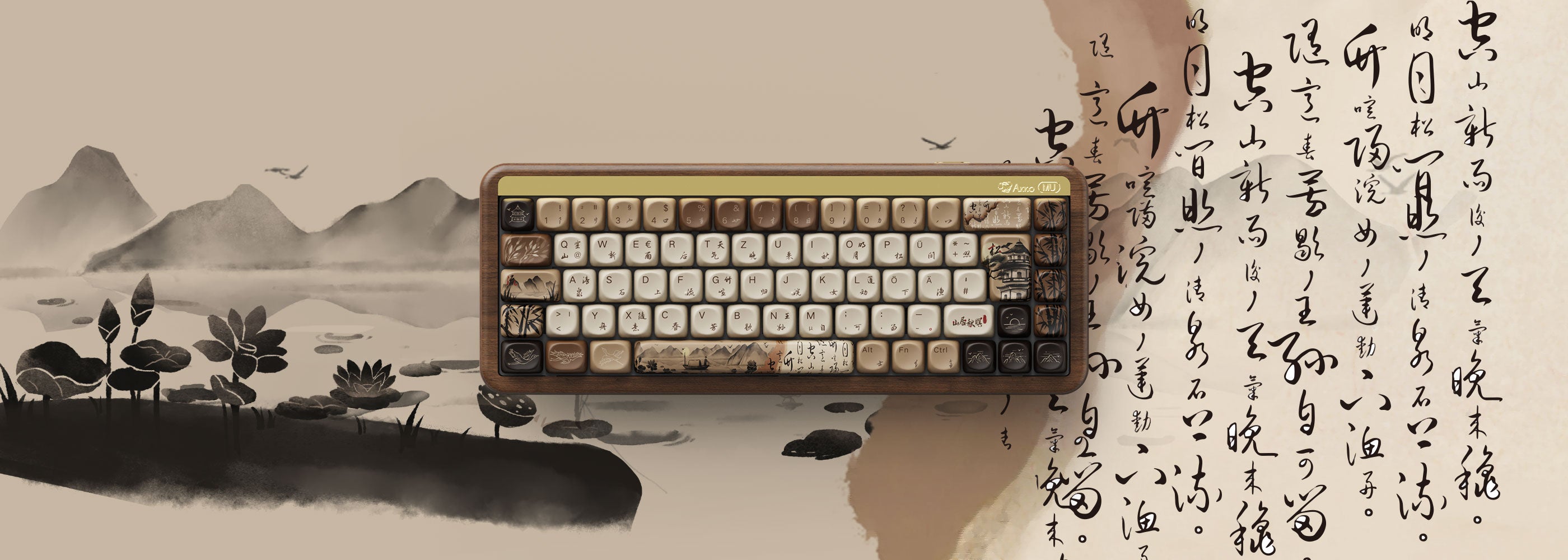 Imprégnez-vous de la beauté de la poésie et de l'art paysager chinois avec le clavier MU01 Mountain Seclusion. Le clavier reproduit l'intégralité du poème « Crépuscule d'automne dans la demeure de montagne » aux côtés de magnifiques paysages chinois.