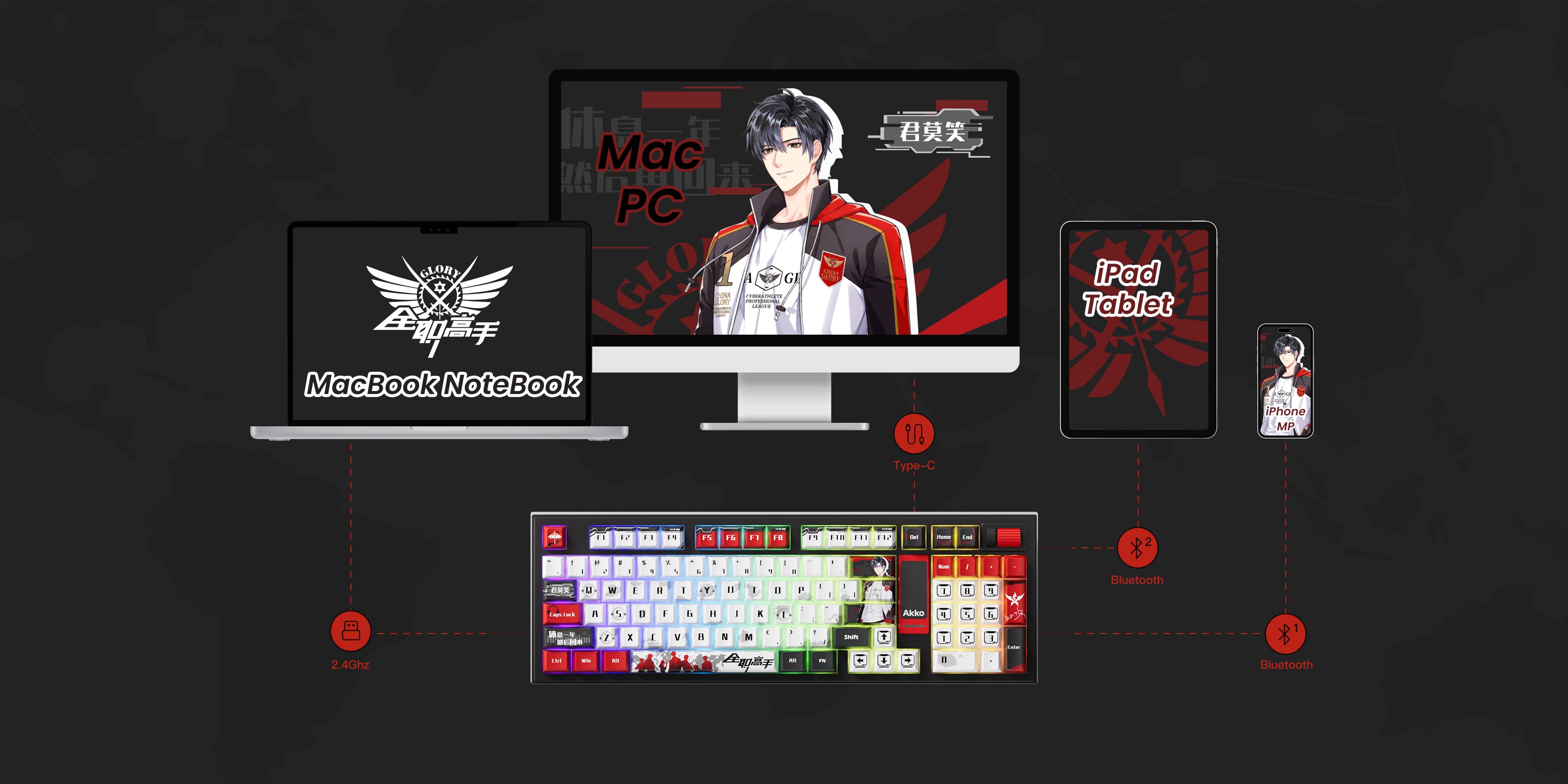 L'Avatar du Roi 5098B – Ye Xiu peut être connecté à plusieurs appareils via Bluetooth 5.0, multi-hôte 2,4 GHz (avec un récepteur) et modes filaires Type-C avec commutation facile.
