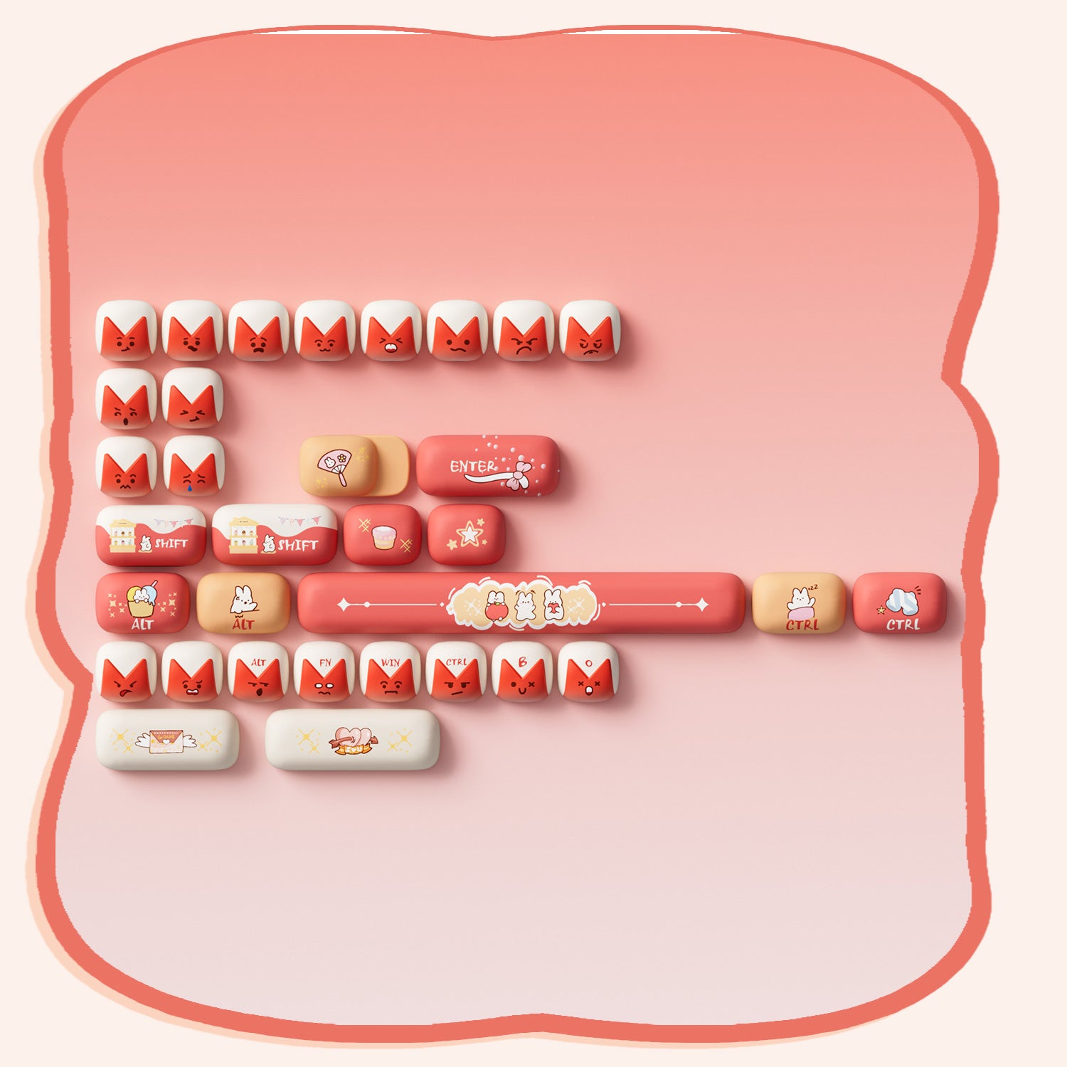 Crafted from premium PBT material, the Bunny Apple Keycap Set is designed to resist wear, fading, and shine, ensuring their delightful appearance remains vibrant over time. Utilizing advanced dye-sublimation technology, the whimsical steamed bun legends are permanently infused into the keycaps, providing clear and durable visibility that won't rub off.