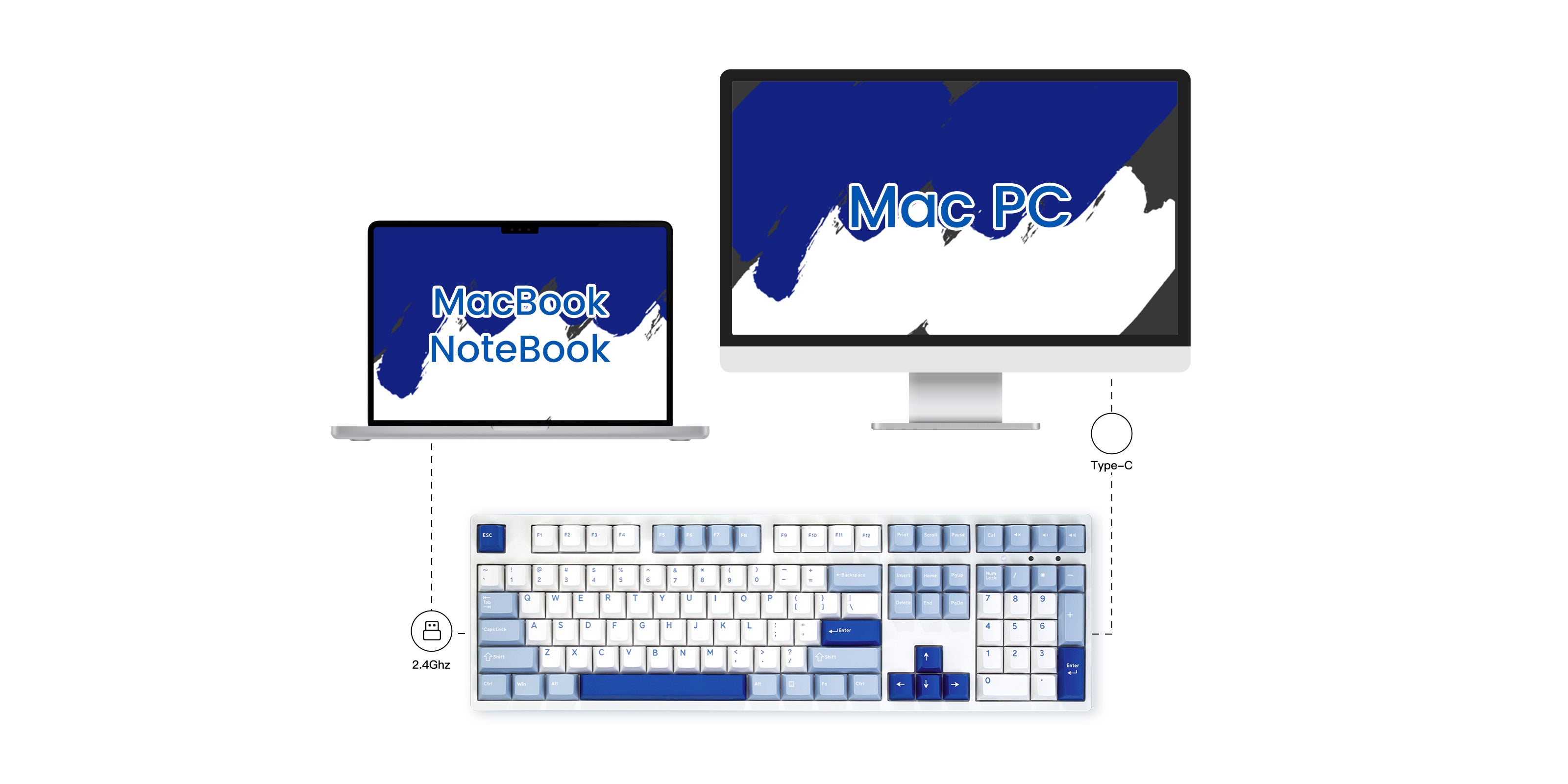 The keyboard supports wireless 2.4G and wired Type-C connections, allowing effective connectivity with multiple devices to meet various work scenarios and usage requirements.