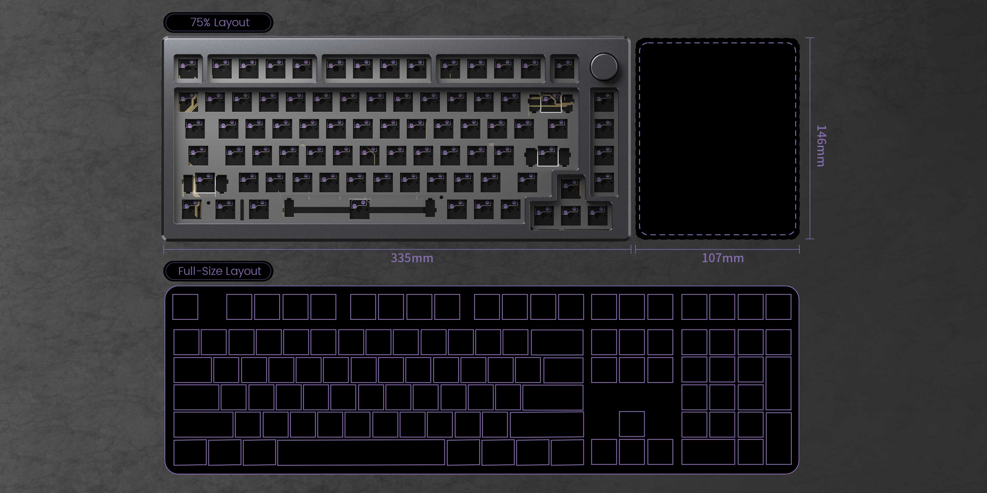 MOD 007 V3 VIA DIY Kit with custom knob can serve various functions, such as adjusting volume, backlight intensity. Experience optimal visibility with a custom knob that allows you to effortlessly adjust backlight intensity, ensuring the perfect lighting conditions for any situation.