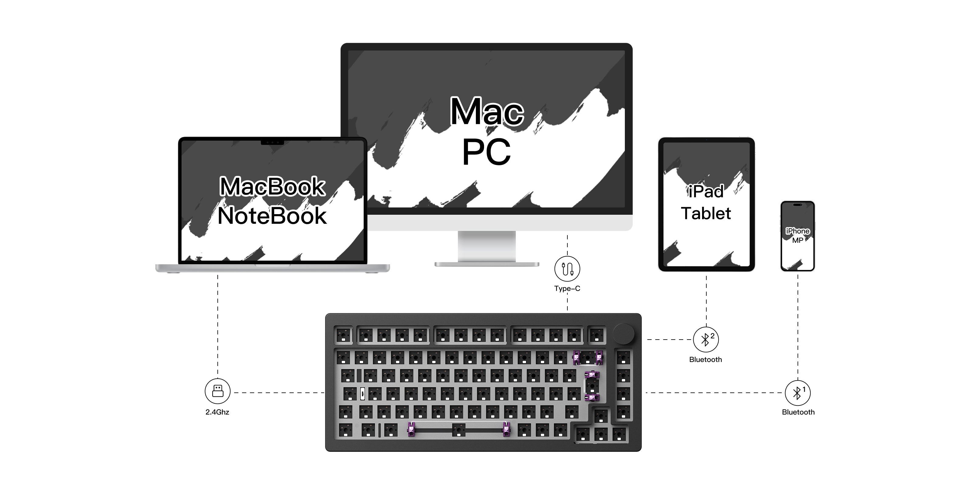 With its multi-mode connectivity options including 2.4GHz wireless, Bluetooth, and USB-C wired connection, you are no longer limited in how you can connect. Moreover, it supports storing up to 3 Bluetooth devices simultaneously.