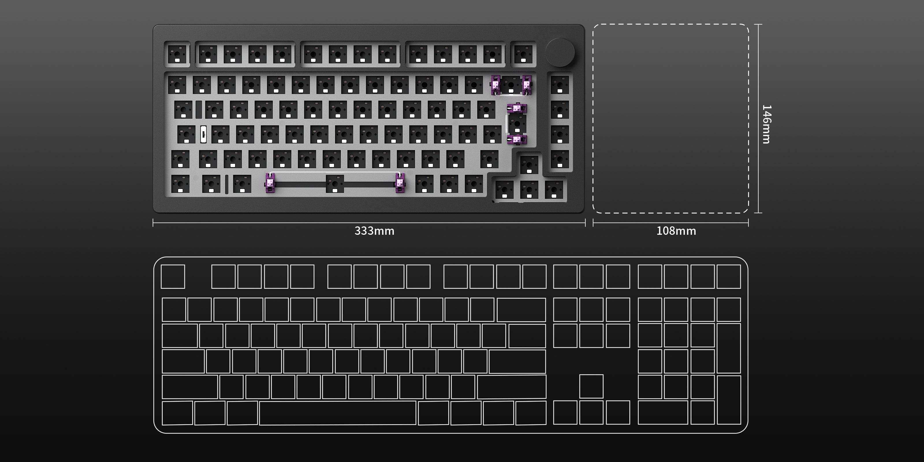 MonsGeek M1W V3 Mechanical Keyboard Diy Kit utilizes plate-mounted stabilizers, which effectively minimizes keycap wobbling.