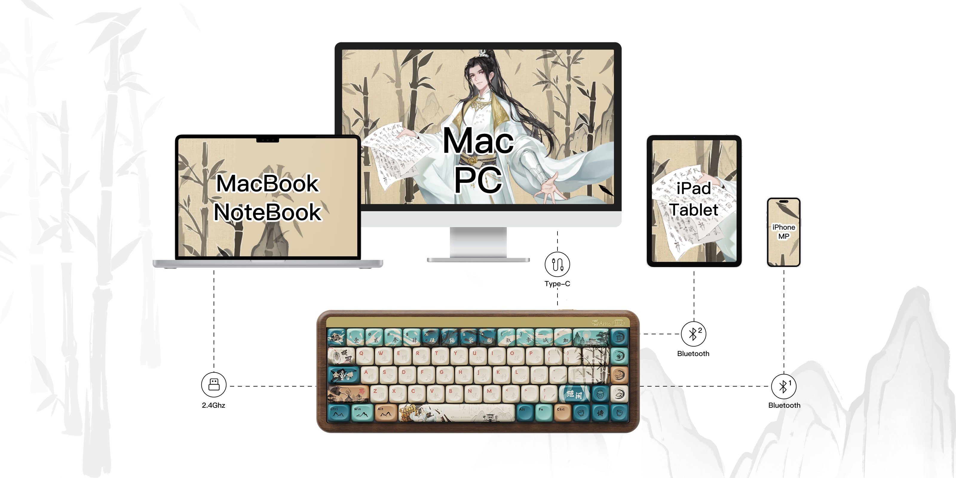MU01 Joy of Life combines classic elements from "Joy of Life" with modern technology, designed to bring a unique typing experience to every fan of "Joy of Life" and ancient style enthusiasts. Whether for work or play, this keyboard will be the most eye-catching item on your desk.