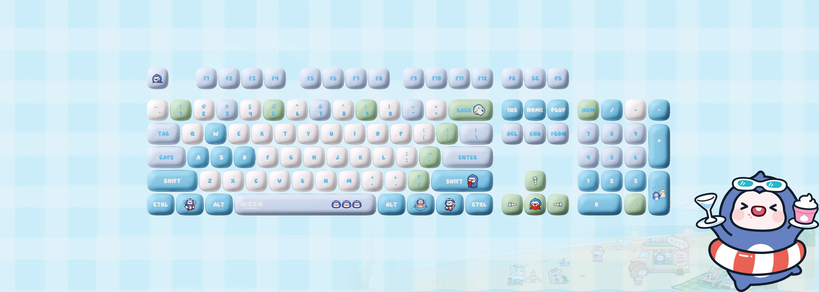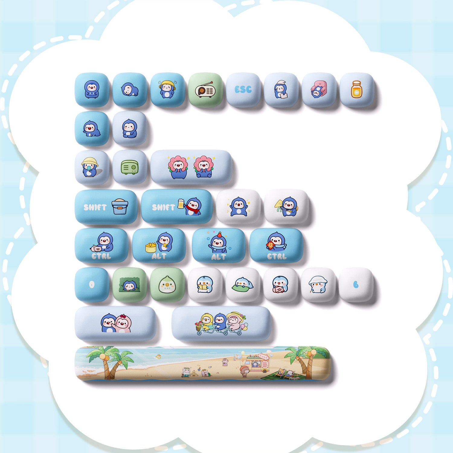 Dive into a cool and cheerful typing experience with the Penguin Adventure keycap set from Akko’s beloved Poco Family series! This set features soothing blues, soft greens, and crisp whites with whimsical penguin-themed novelties and tropical beach artwork—perfect for turning your keyboard into a frosty, fun escape.