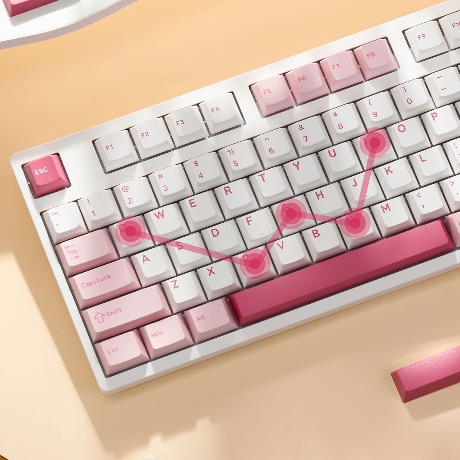 Elevate your typing experience with the Prunus Lannesiana 3108v3 full size mechanical keyboard. Designed with a stunning aesthetic, this keyboard features a beautiful pink finish that adds a charming touch to any workspace.