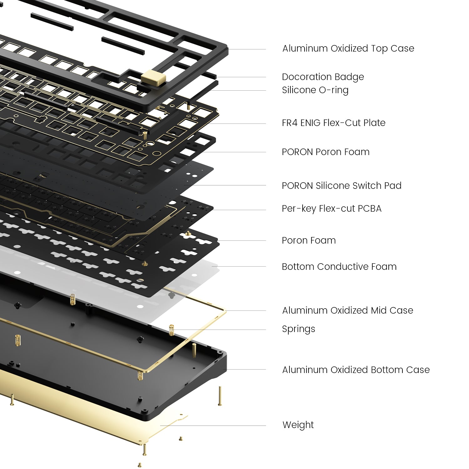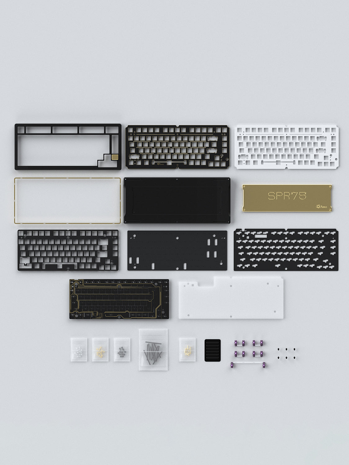 The plate of SPR75 is exclusively supported by springs, that you can select to adjust the flexibility. Akko provides 3 sets of springs with different forces so that you can make it stiff or flex by your own.