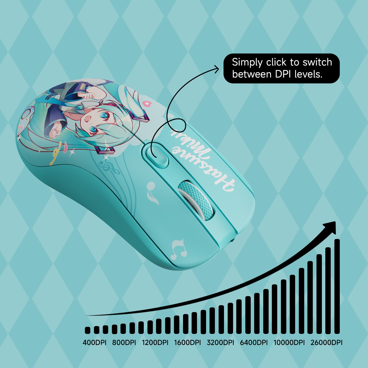 The AG ONE 8K Gaming Mouse Hatsune Miku offers 8 customizable DPI levels, ranging from 400 to 26,000, allowing you to fine-tune your sensitivity for any task or game. This flexibility ensures precise control, whether you're navigating intricate designs, working across multiple screen resolutions, or gaming at the highest level.