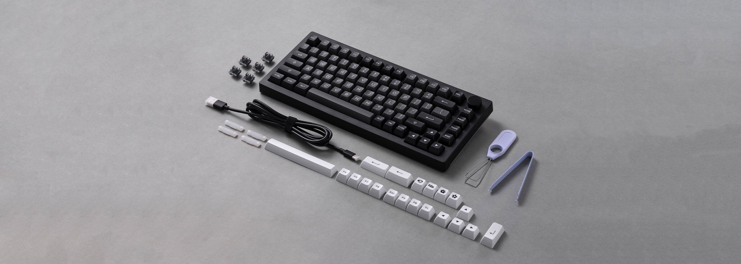 Keyboard×1, Manual×1, Cable×1, Supplementary Keycaps, Keycap Puller×1, Switch Puller×1, Dust Cover×1