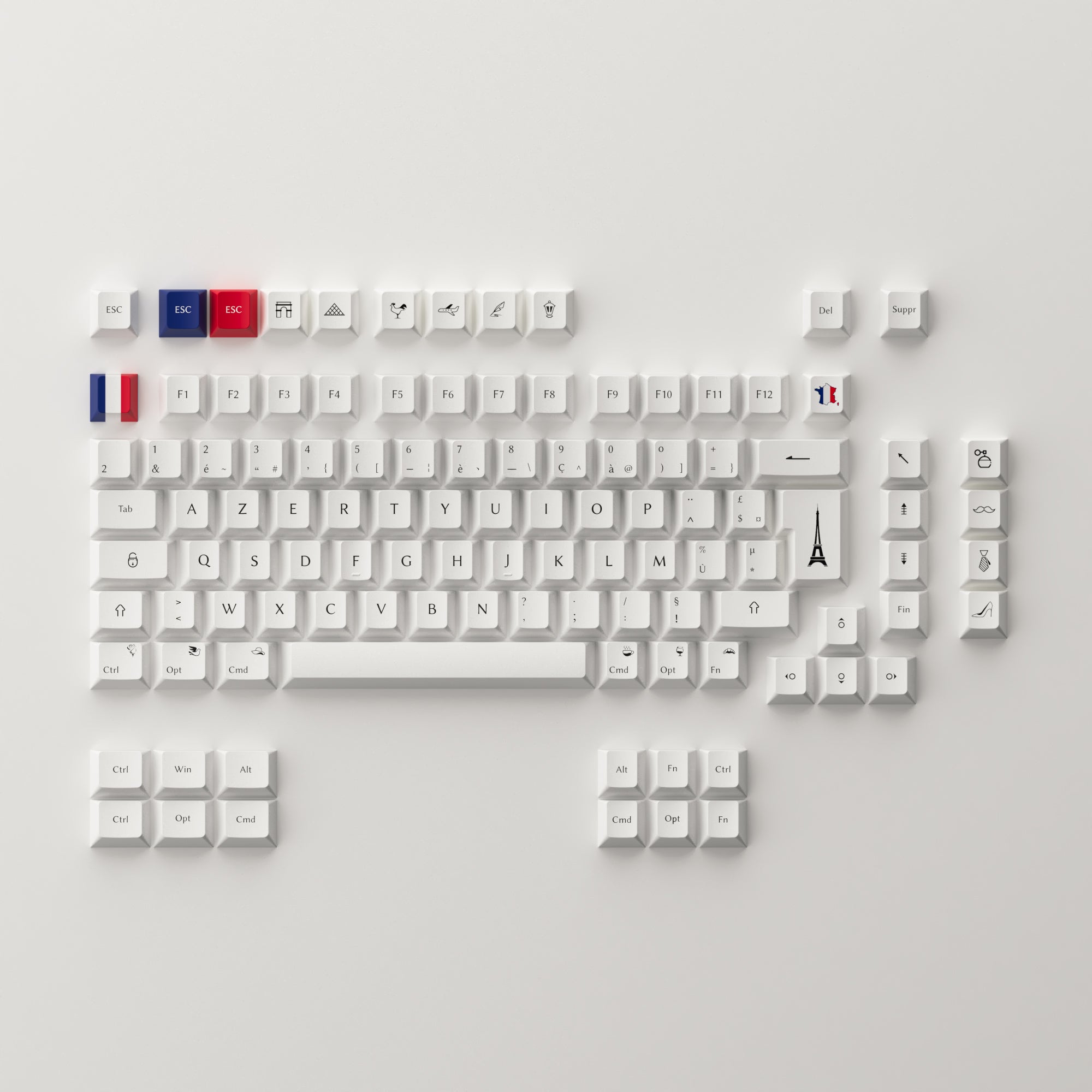 Akko first ISO-FR layout keycap set, decorated with France element, in PBT dye-sublimation and Cherry profile.
