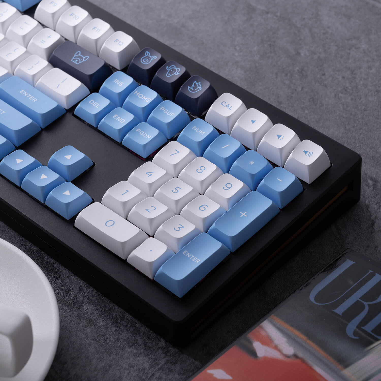 These keycaps' legends won't fade over time thanks to the double-shot molding process. This ensures that the striking blue coloring and distinct inscriptions stay vivid and readable, offering a long-lasting visual appeal.