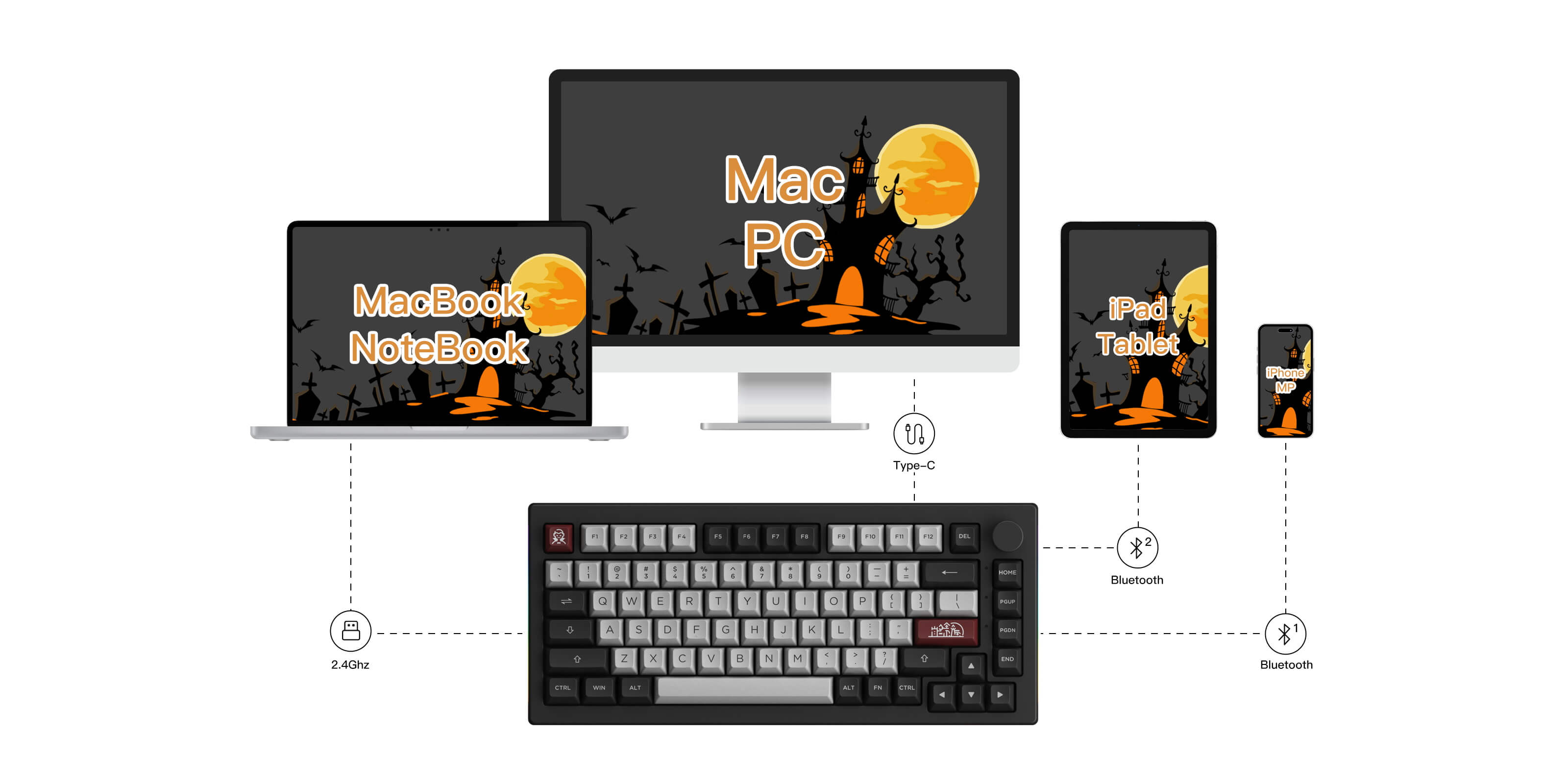5075B Plus version comes with Beken Plus chip with tri-modes solution (2.4G/Bluetooth 5.0/Type-C). Support up to 3 Bluetooth devices stored. Compatible with Windows / macOS / iOS / Android.