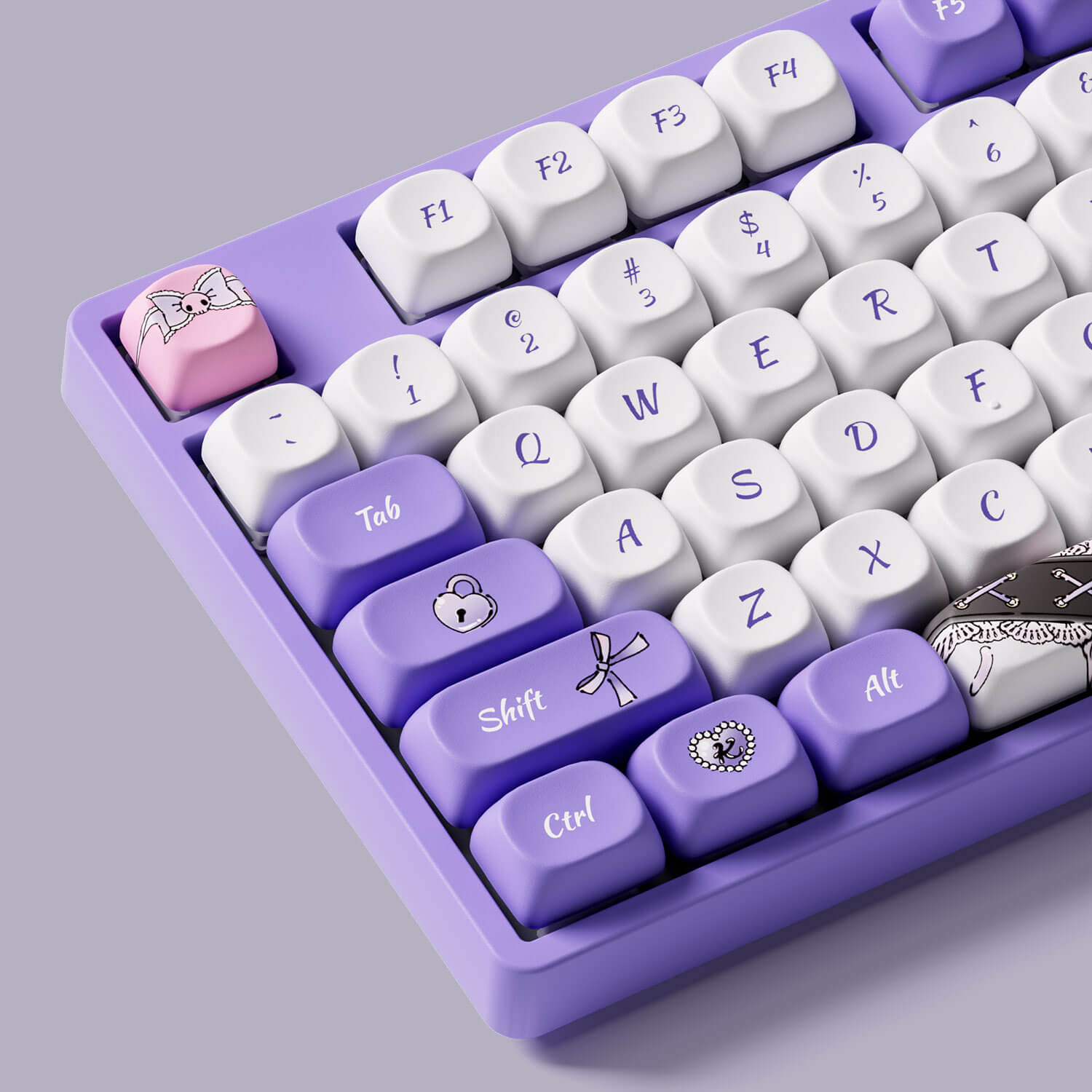 Kuromi 5108B Plus is a purple mechanical keyboard with Kuromi design elements, which makes it special and unique! 100 layout makes you easily achieve a range of functions without using complex key combinations.