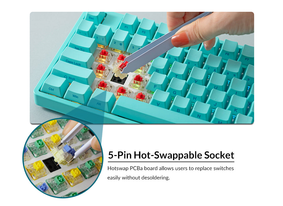 Equipped with premium hot-swappable sockets, allowing users to swap desirable switches afterwards.