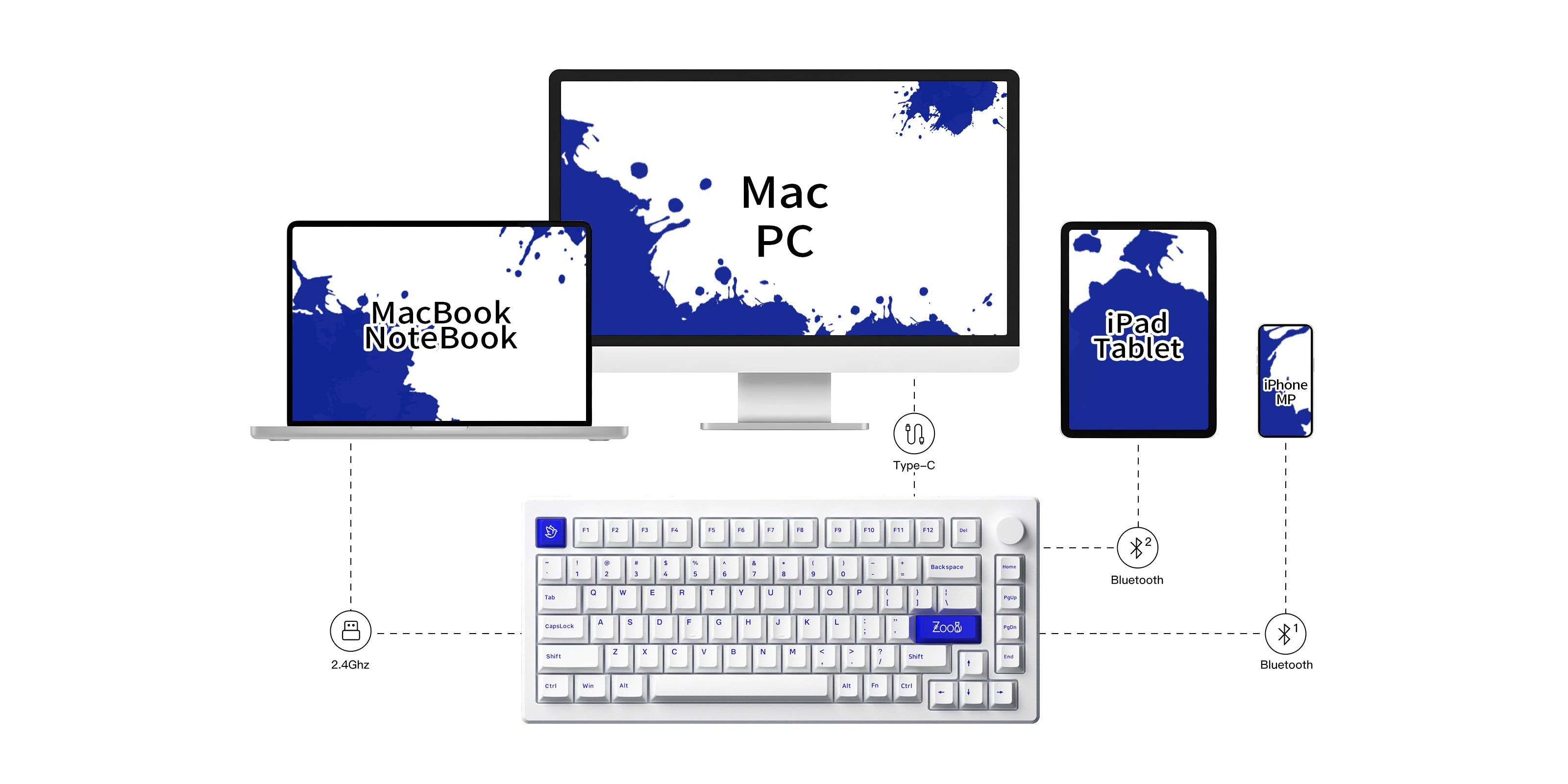 Meet the Akko MOD 007B PC Blue on White, 2024 new mechanical keyboard comes with our premium design, including gasket mount, PBT keycaps, multi-mode, etc.. Provide you with an excellent typing experience!