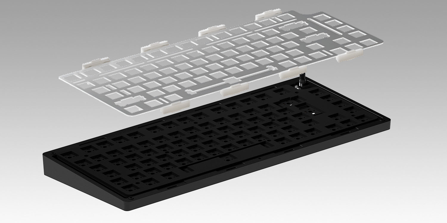 MonsGeek M1W V3 HE-SP feature with a gasket material, such as silicone or neoprene, to create a “floating” mount for the switches. The gasket is placed between the plate and the PCB, which allows for a more flexible and cushioned typing experience.