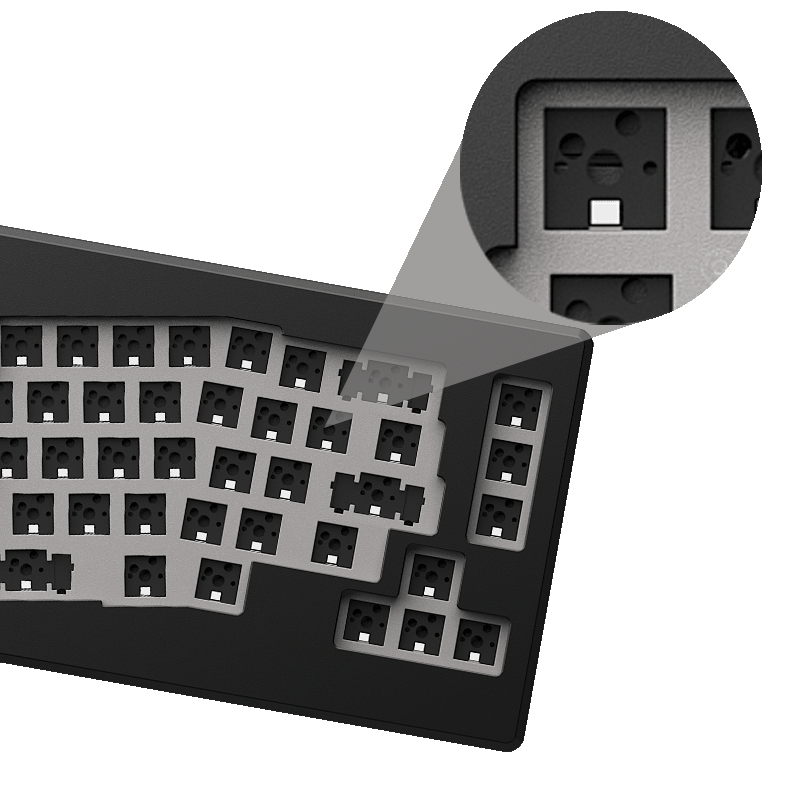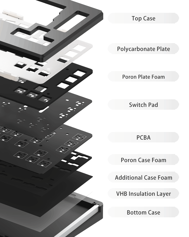 MonsGeek includes a default 3mm custom-made foam for a balanced feeling. Disclaimer: the foam will affect the overall sound profile and flex.