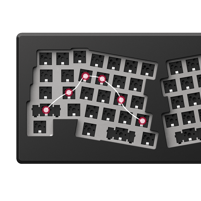 This aluminum barebone kit boasts unique 65% alice-style layouts, setting it apart from traditional designs, ensuring optimal comfort and efficiency.