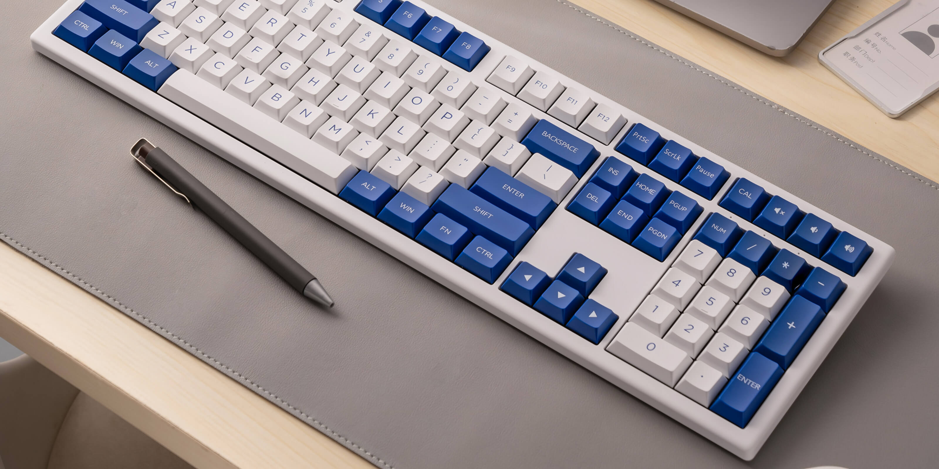 The full-sized 108-key keyboard comes with adjustable feet, enabling users to personalize their typing angle for a more comfortable and tailored experience.