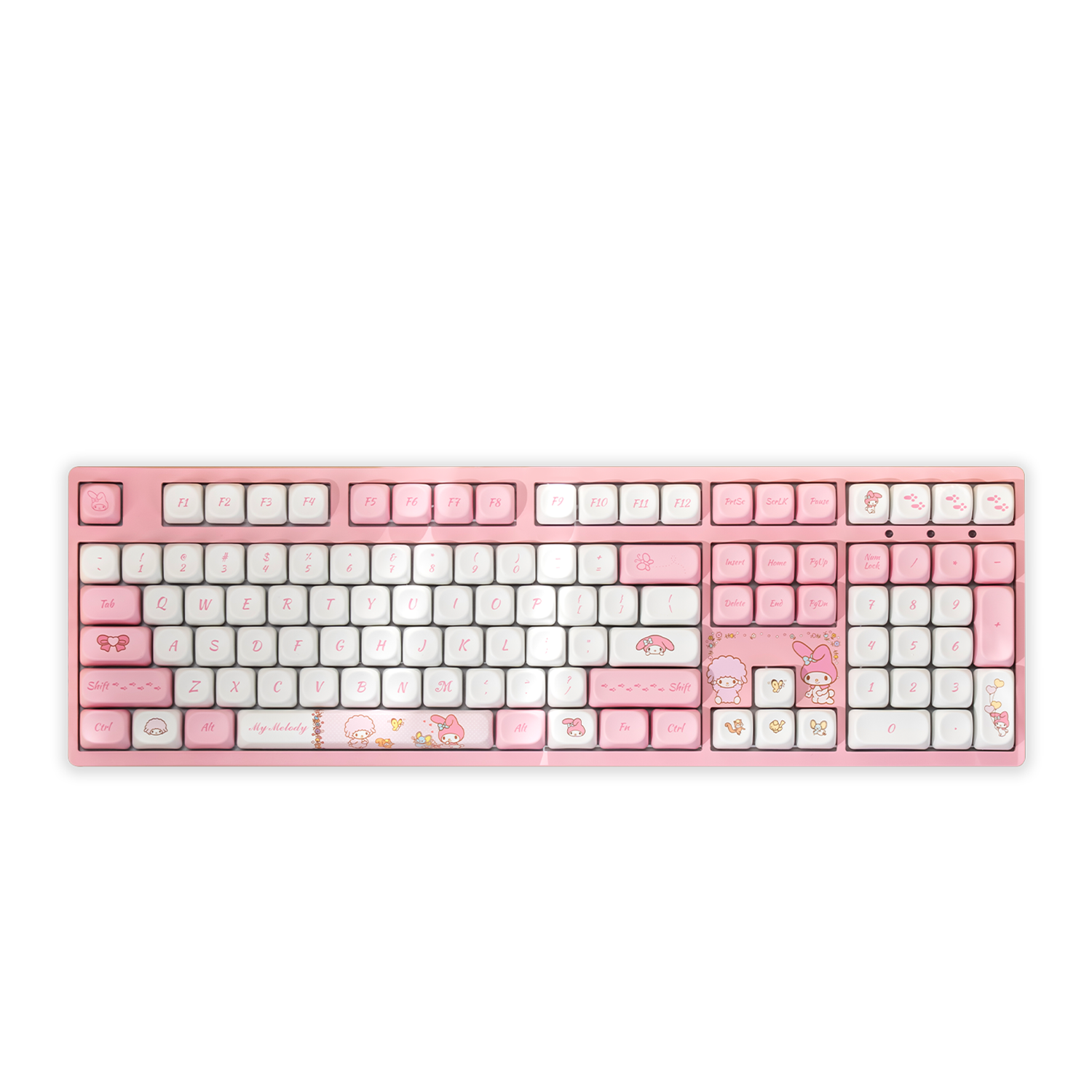 Adorned in soft pink and white hues, this keyboard brings Sanrio’s beloved My Melody and friends to life — from the delicately printed keycaps to the whimsical spacebar artwork. Each keystroke feels as delightful as it looks, making typing or gaming a truly heartwarming experience.