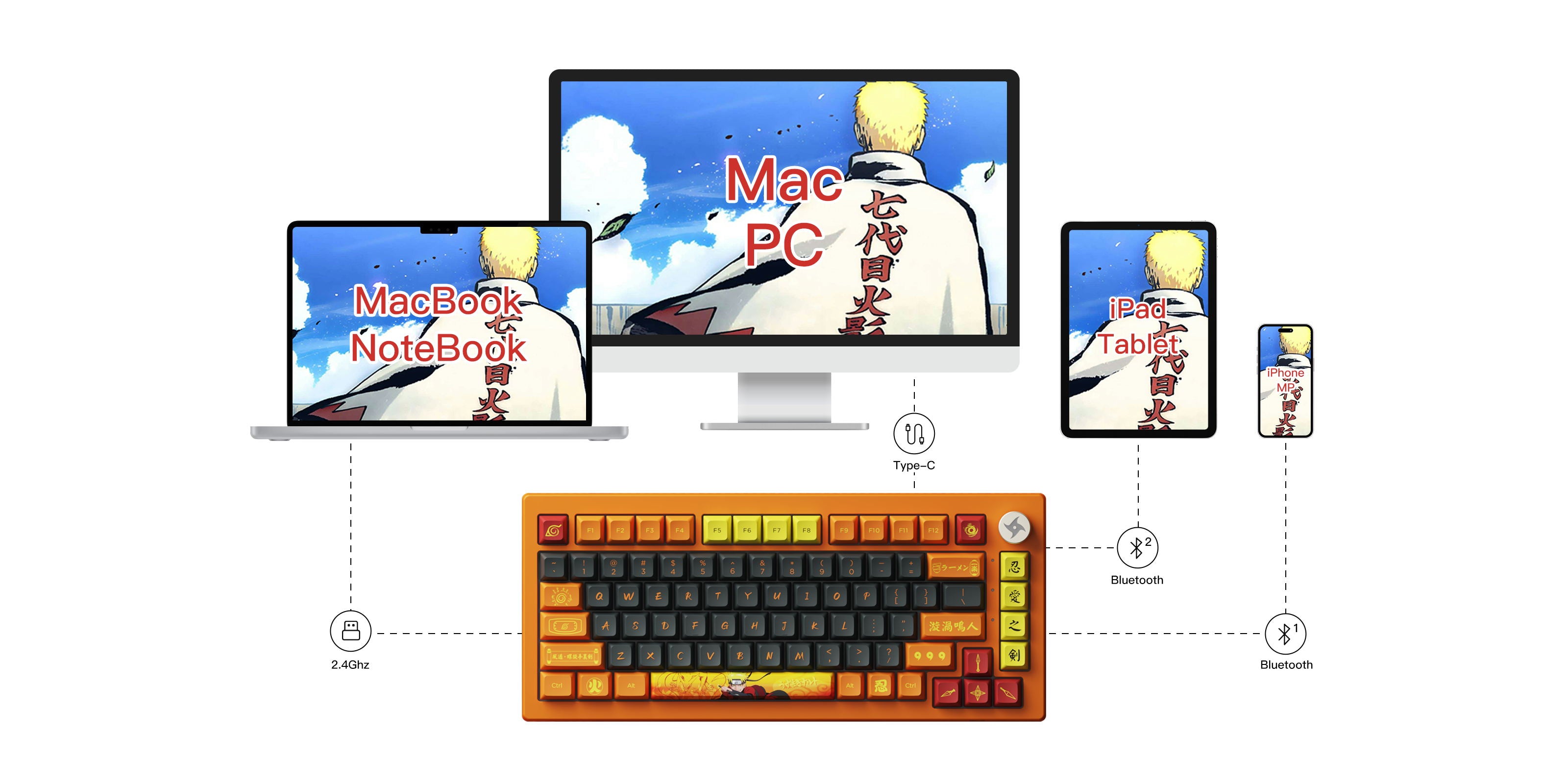 Meet the Akko Naruto Uzumaki 20th Anniversary 5075B Plus, 2023 new mechanical keyboard comes with our premium design, including gasket mount, double-shot TPU plate mount stabilizers, PBT keycaps, etc.. Provide you with an excellent typing experience!