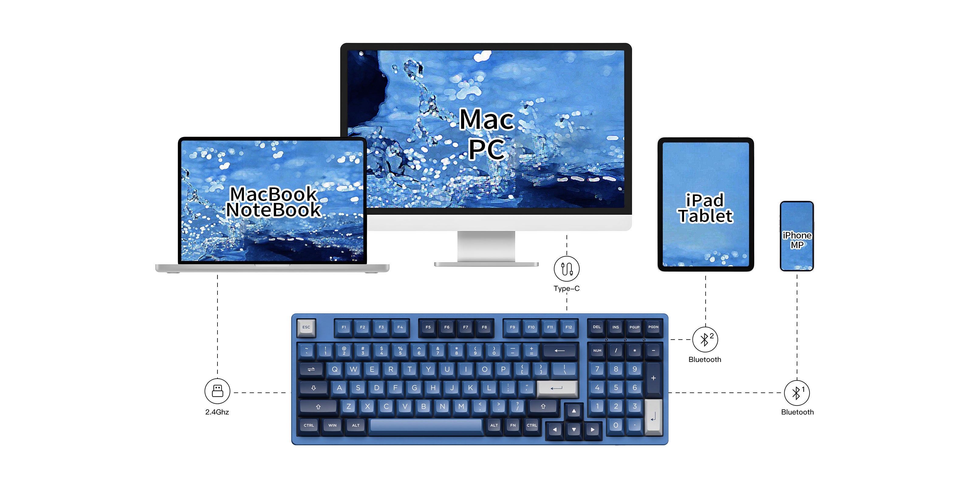 RGB LED Backlit + Hot-swappable + Bluetooth 5.0 + 2.4G Wireless + Wired (USB-C Mode) All in One!