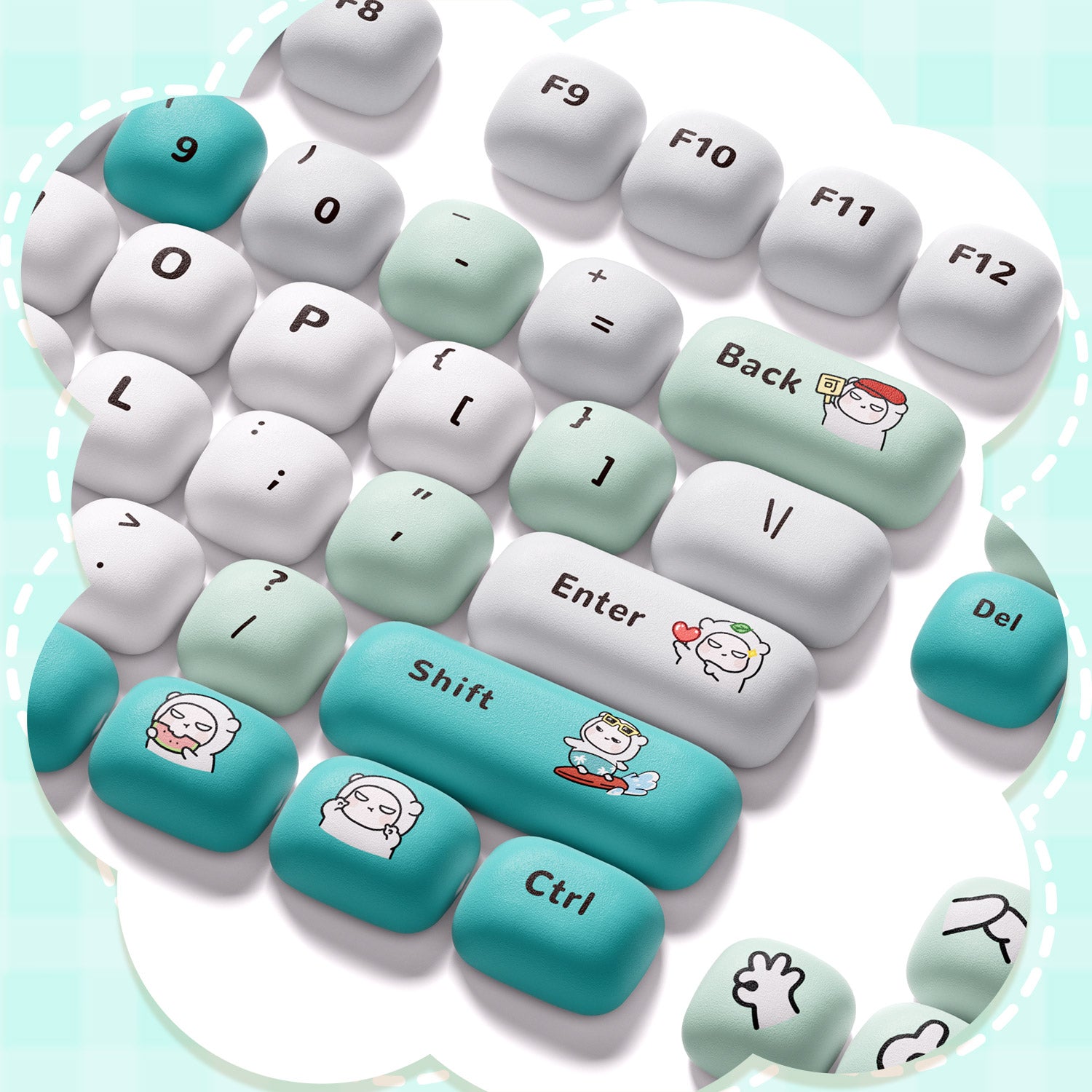Crafted from premium PBT material, the POCO Bear Keycap Set (129-key) is designed to resist wear, fading, and shine, ensuring their delightful appearance remains vibrant over time. Utilizing advanced dye-sublimation technology, the whimsical POCO family legends are permanently infused into the keycaps, providing clear and durable visibility that won't rub off.