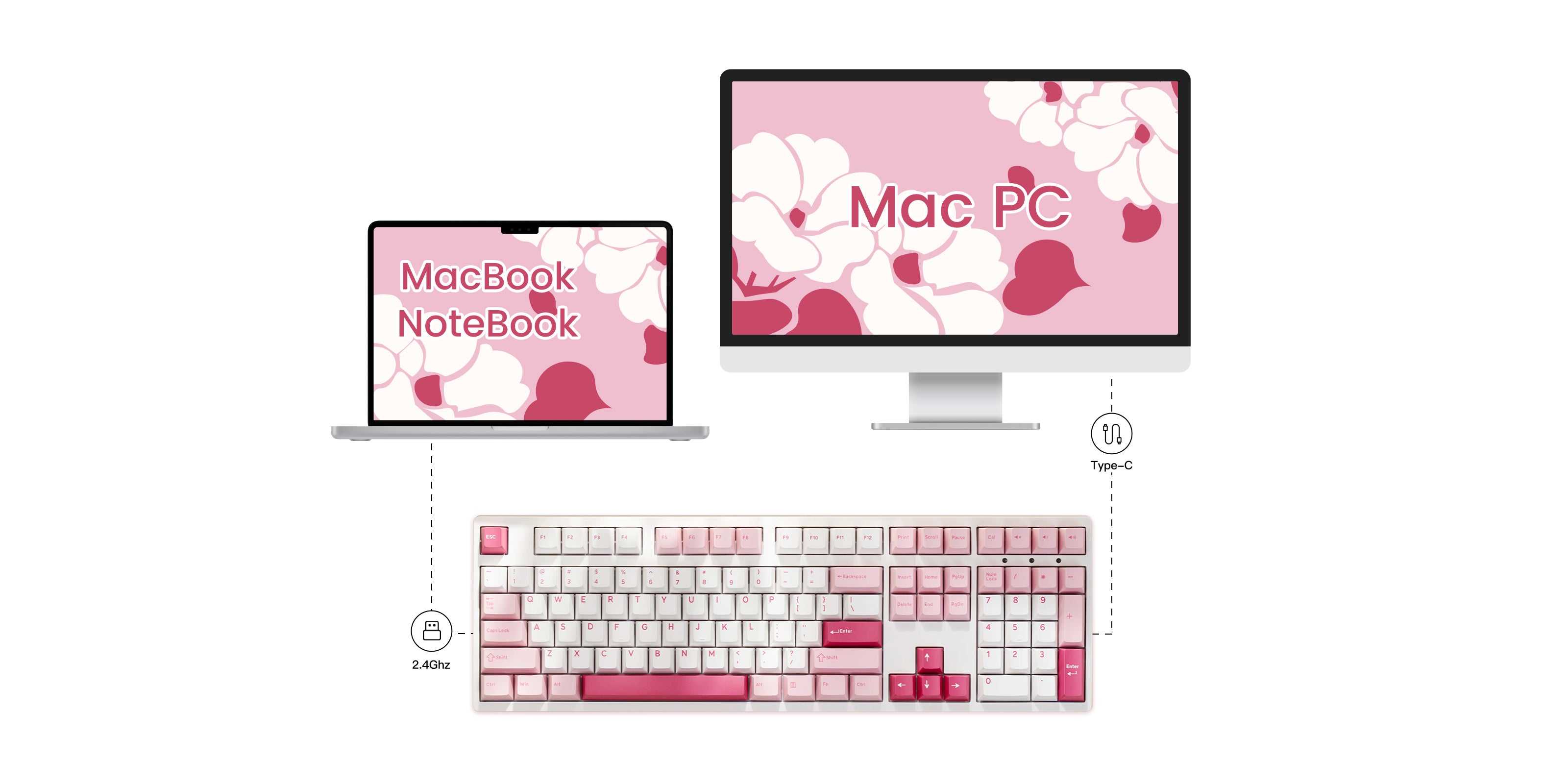 The keyboard supports wireless 2.4G and wired Type-C connections, allowing effective connectivity with multiple devices to meet various work scenarios and usage requirements.