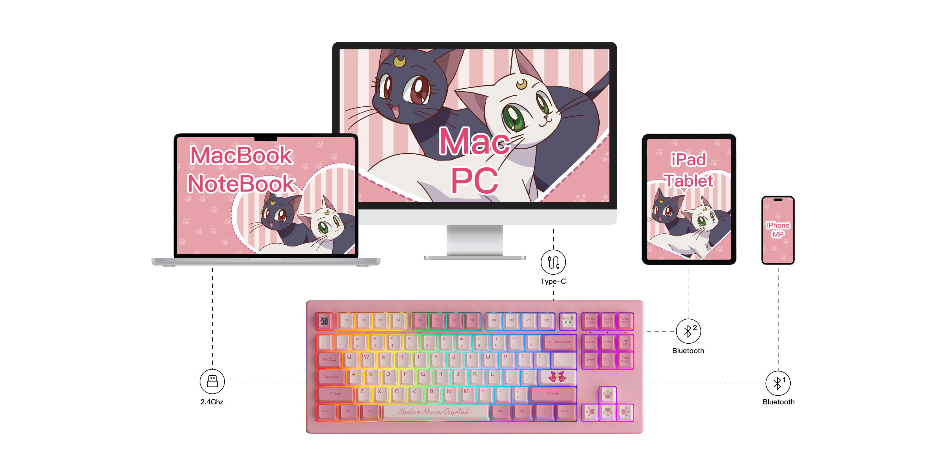 Akko x Sailor Moon Crystal Limited Edition Keyboard | Dye-sub OEM Profile Keycaps | Side Light Bar