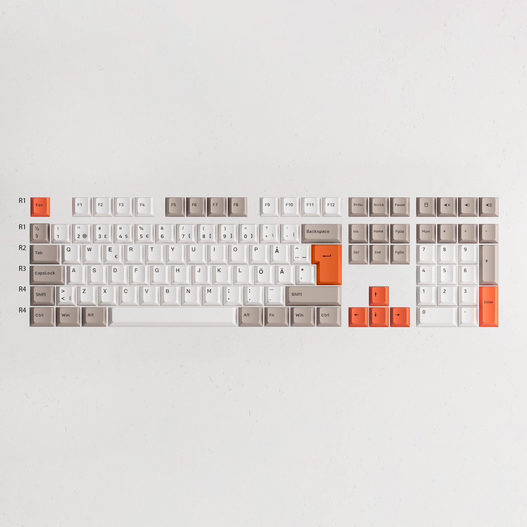 This Steam Engine ISO Nordic Keycap Set (109-key) is fully compatible with 100% and TKL layout mechanical keyboards.