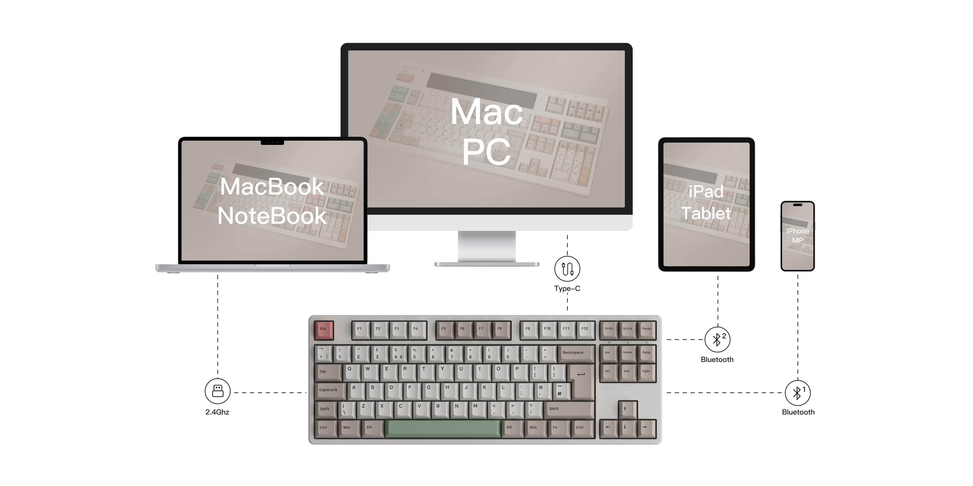 5075B Plus comes with Beken Plus chip with tri-modes solution (2.4G/Bluetooth/Type-C). In addition, support up to 3 Bluetooth devices stored. Compatible with Windows / Mac / Android.