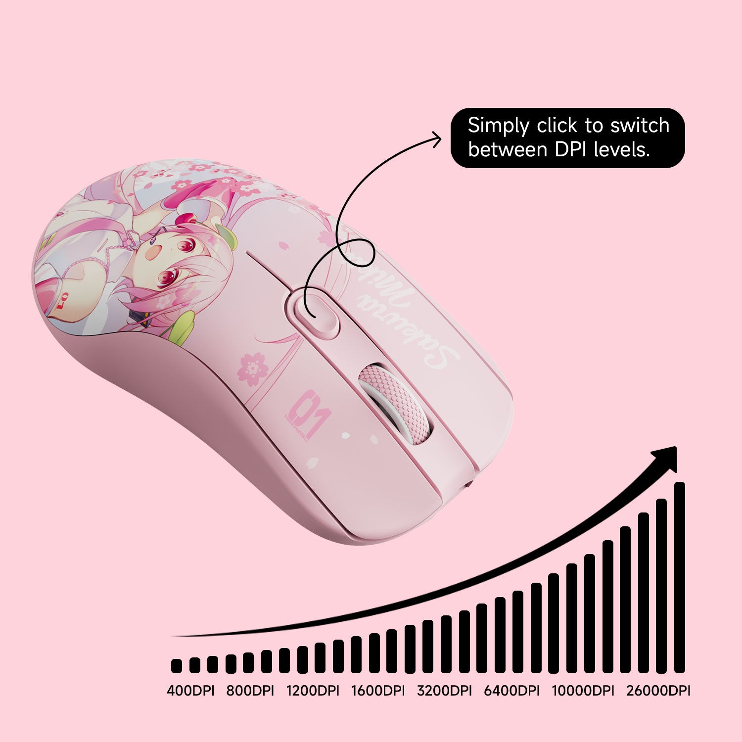 The AG ONE 8K Gaming Mouse Sakura Miku features 8 customizable DPI settings, ranging from 400 to 26,000, giving you the flexibility to tailor sensitivity to your needs. Whether you're tackling detailed designs, navigating various screen resolutions, or gaming at peak performance, this precision ensures optimal control in every scenario.