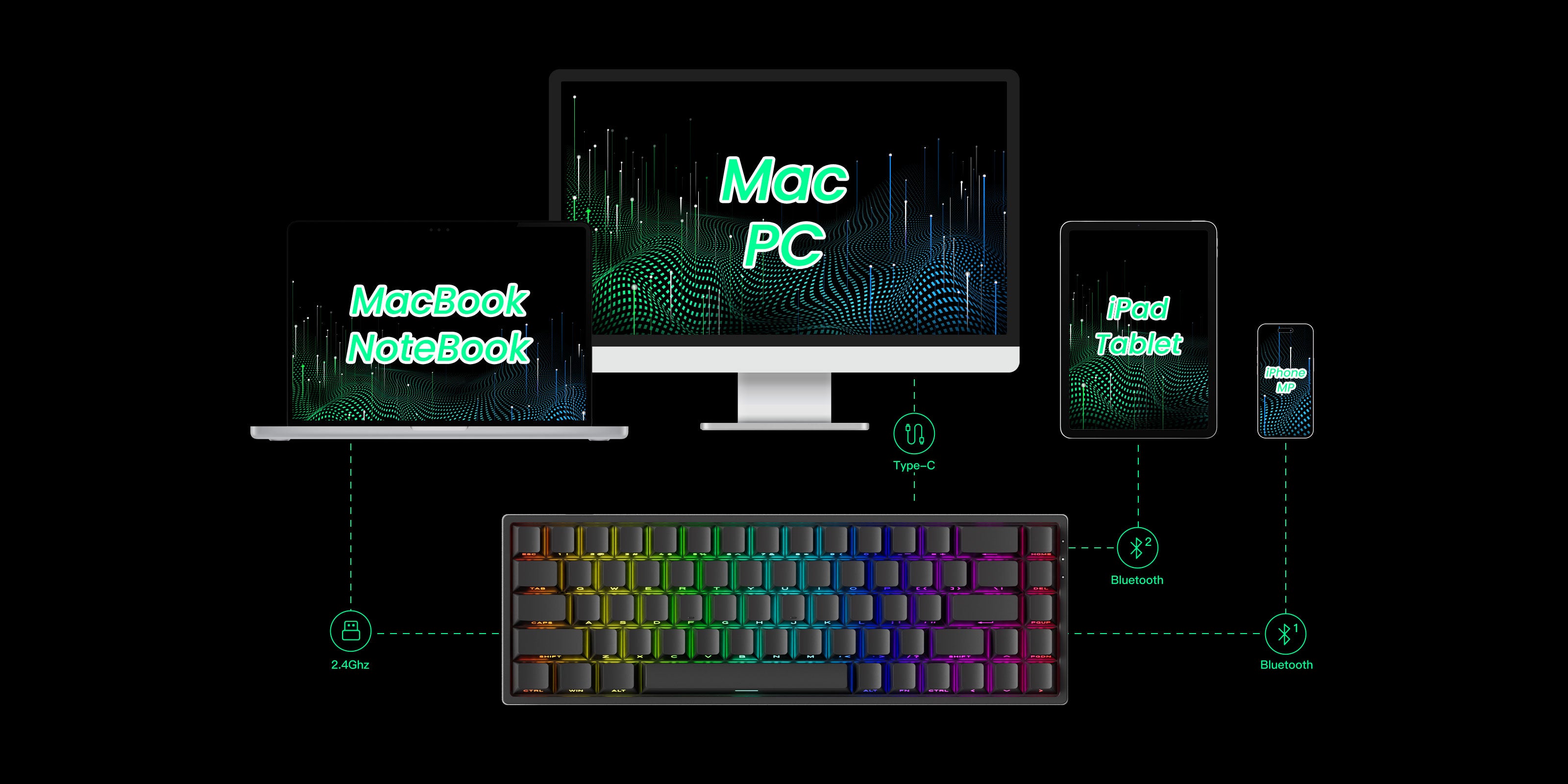Offer a choice for users who prefer a USB-C wired keyboard, ensuring consistent and rapid response times for FPS gaming and minimal input lag.