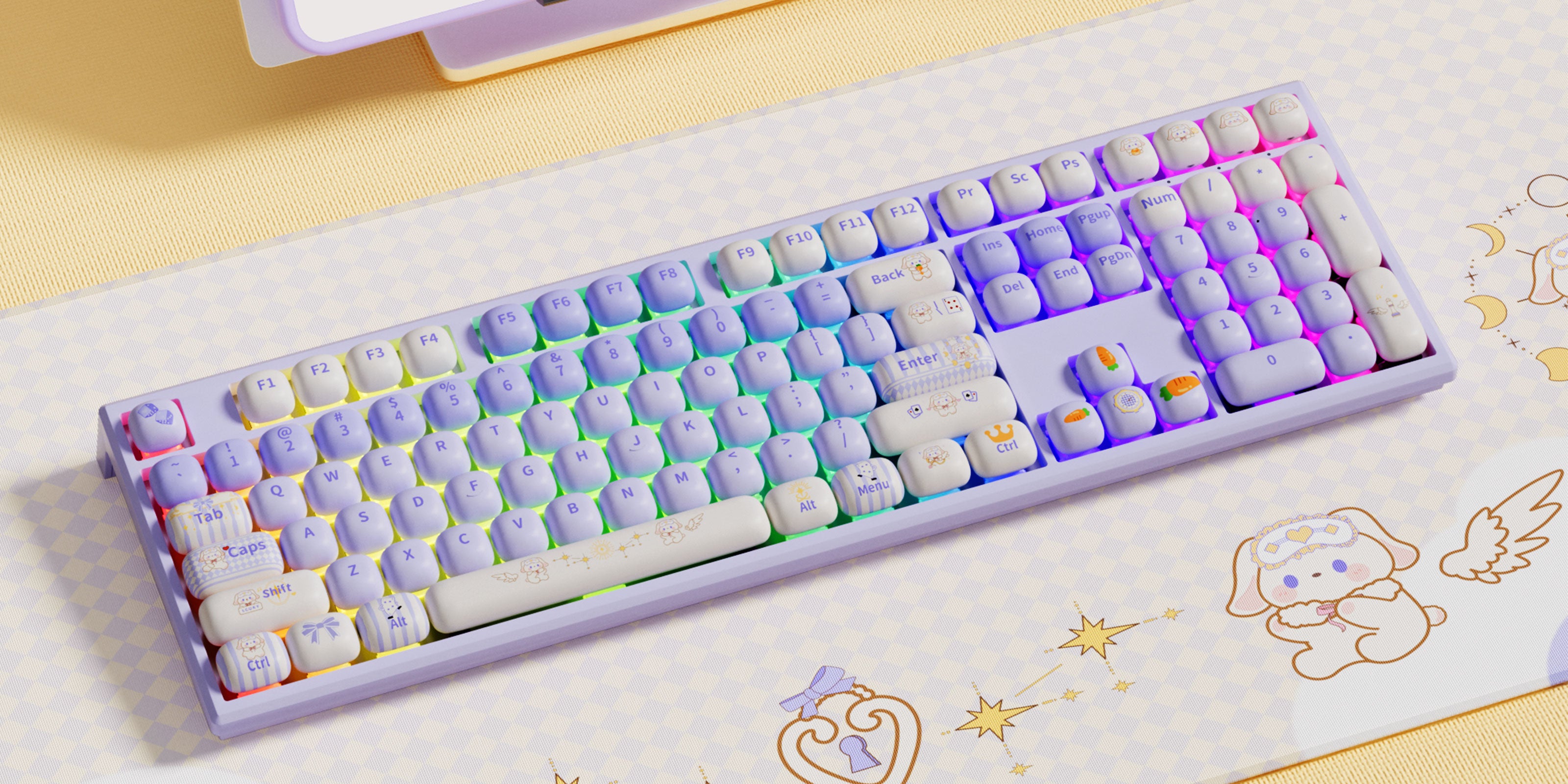 MG108B Magic Lop Bunny is a mechanical keyboard that combines whimsical design with advanced functionality. It features adorable bunny motifs and fairy-tale patterns, adding a touch of fantasy and cuteness. With customizable RGB backlighting, hot-swappable sockets, and multi-mode connectivity options, making it ideal for both gamers and typists who appreciate style and versatility.