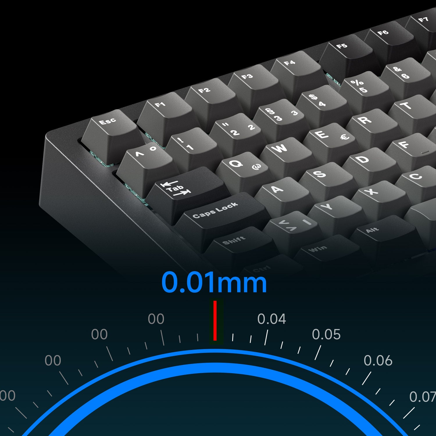Attain ultra-precise 0.01mm Rapid Trigger and adjustable actuation distance in 0.01mm steps. Users can adjust their typing or gaming experience for faster response times and improved accuracy, perfect for competitive gaming.