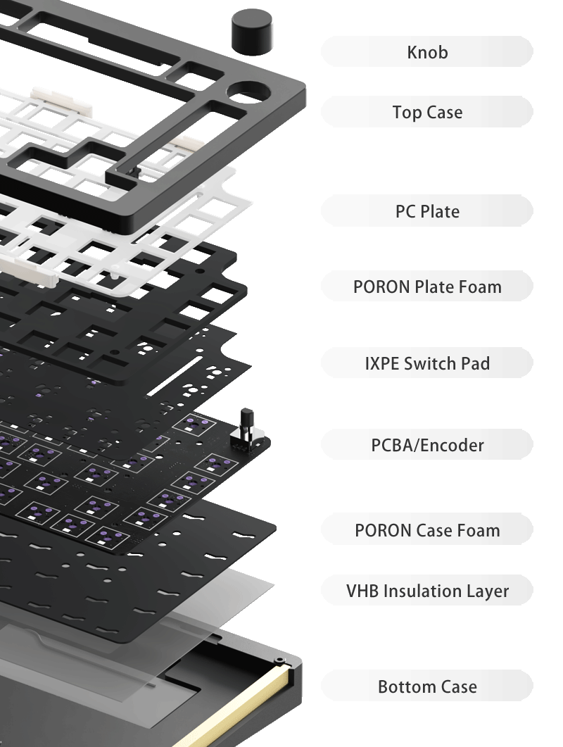 MonsGeek includes a default 3mm custom-made foam for a balanced feeling. Disclaimer: the foam will affect the overall sound profile and flex.